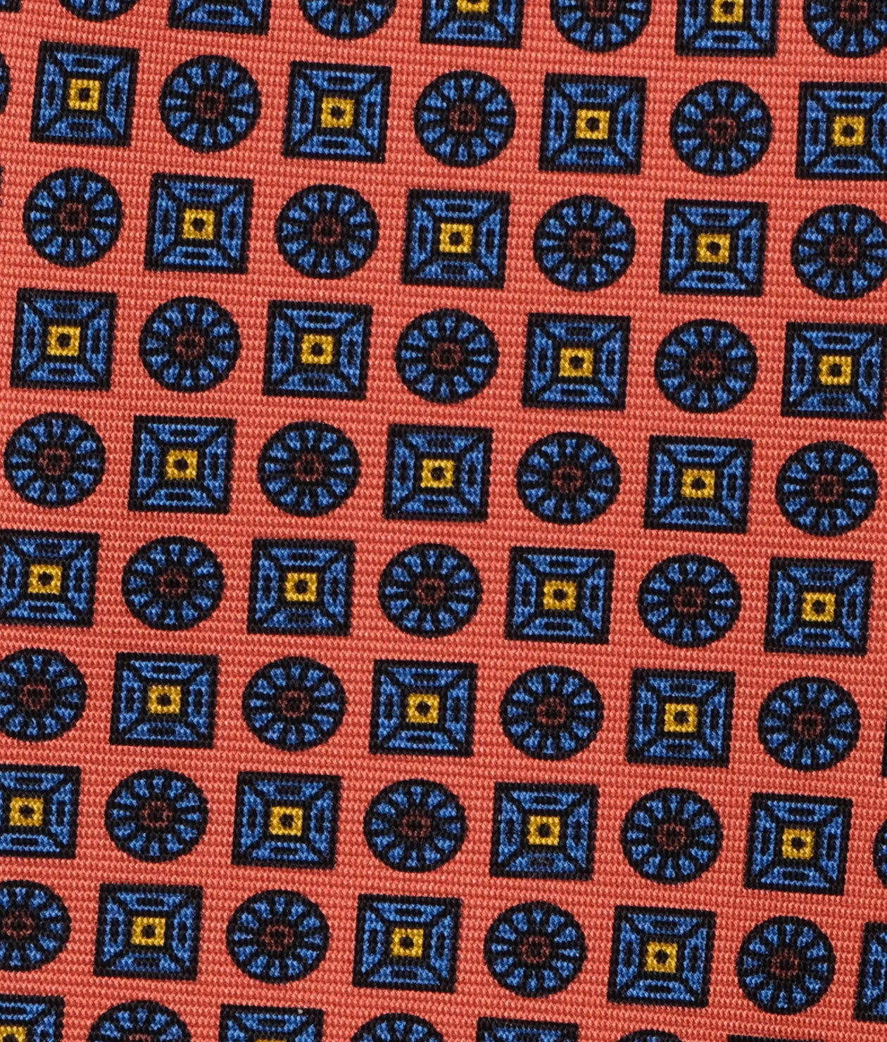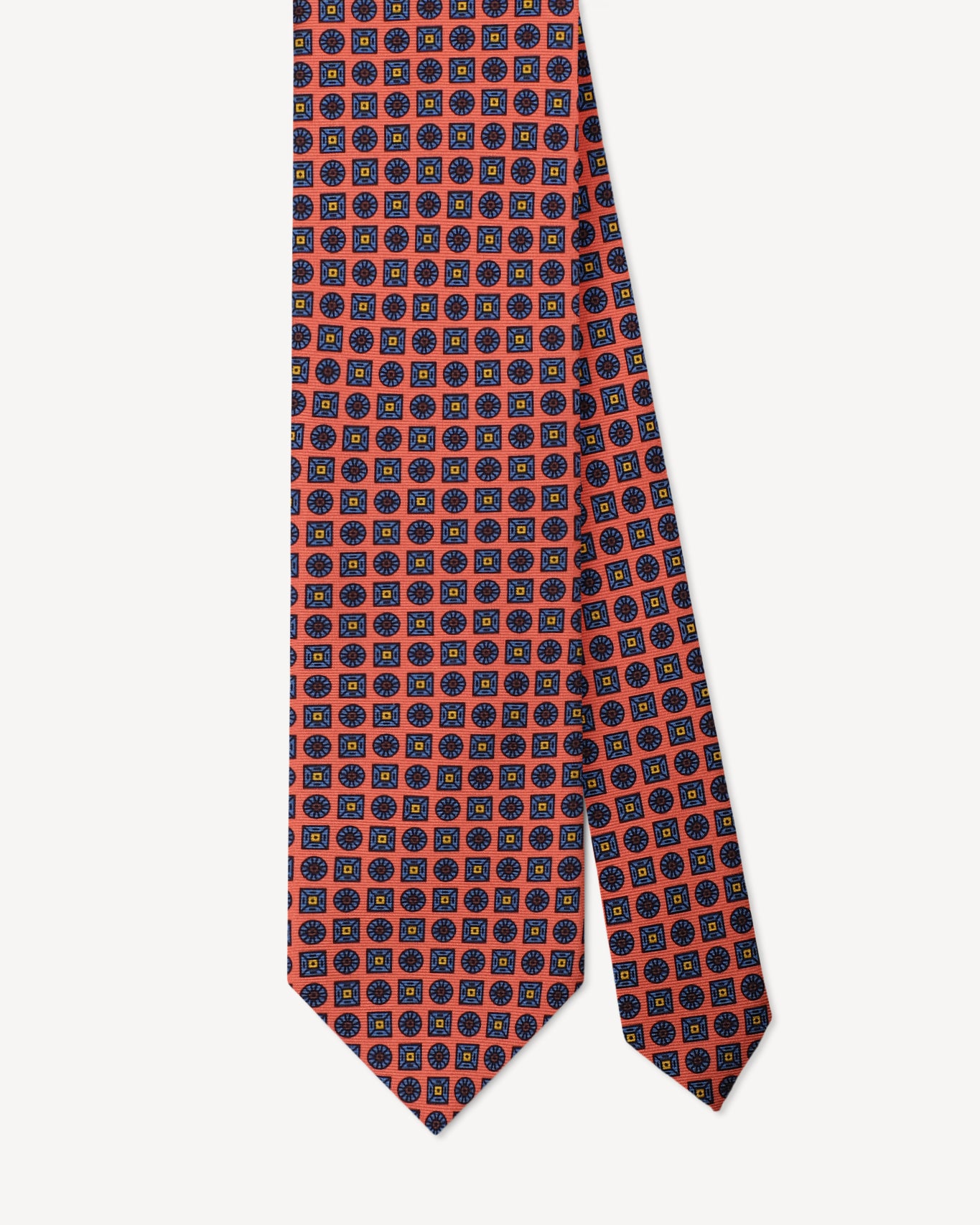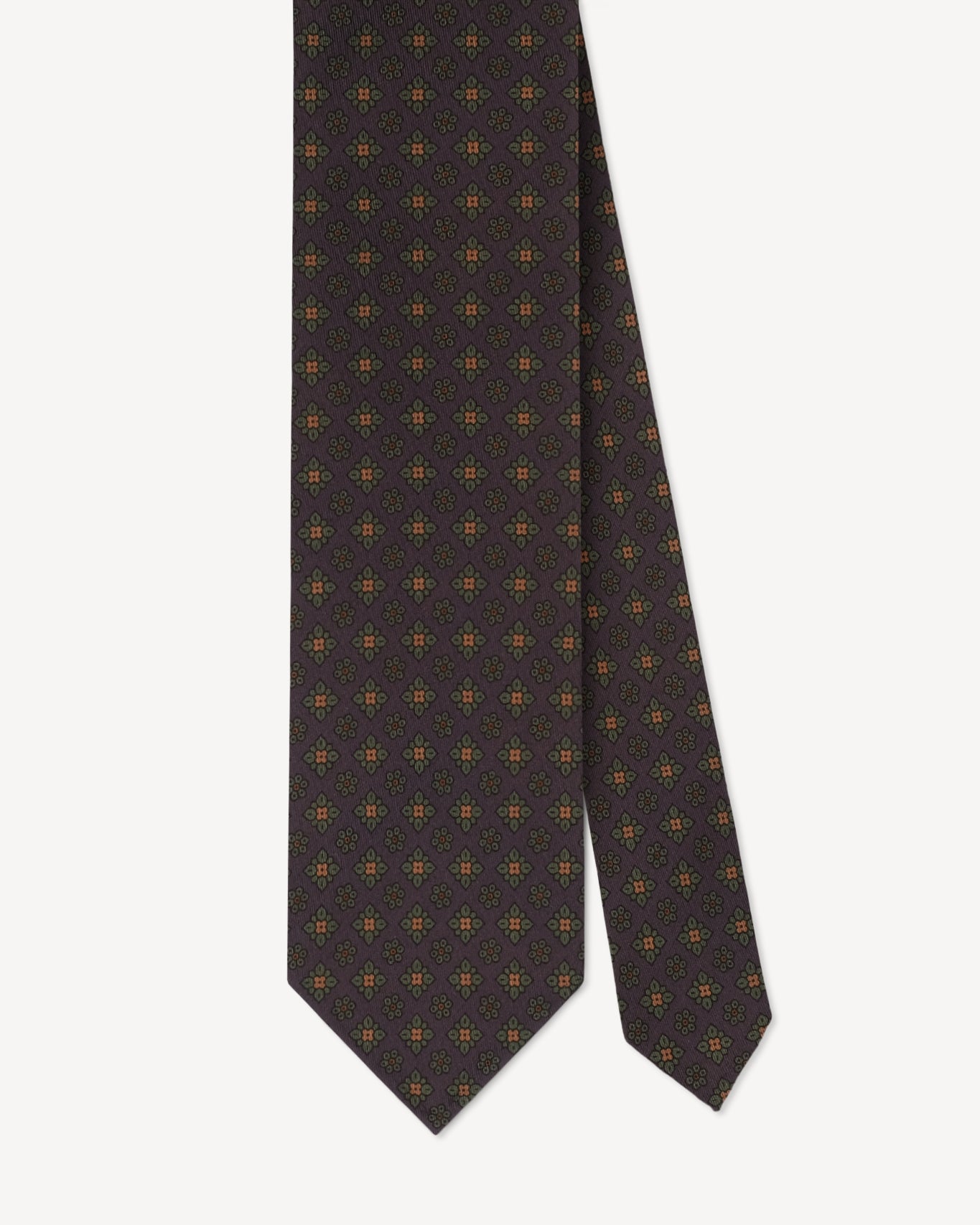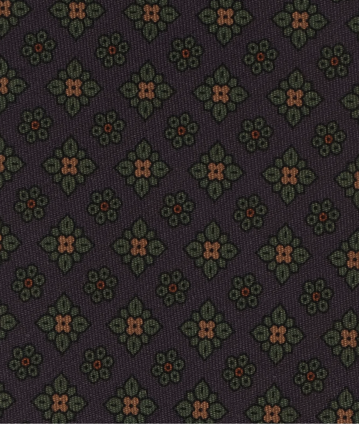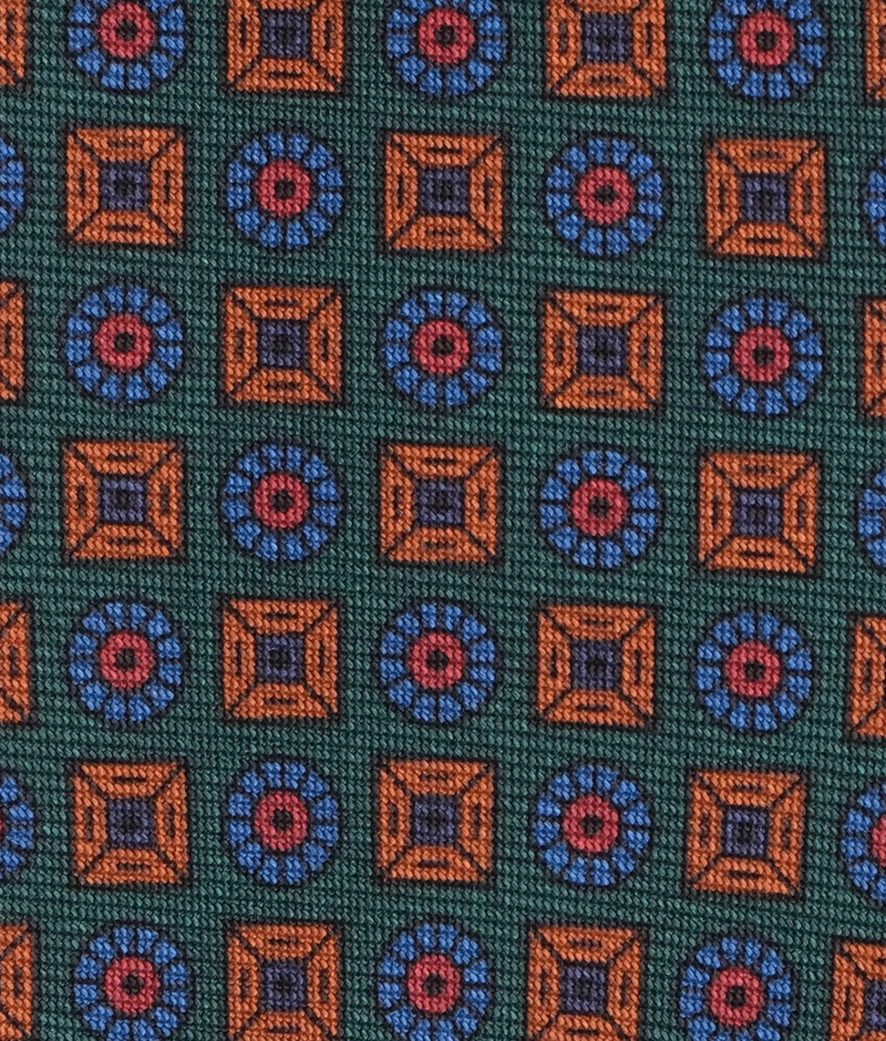Diamond Floral Handprinted Ancient Madder SILK TIE – Forest Mix