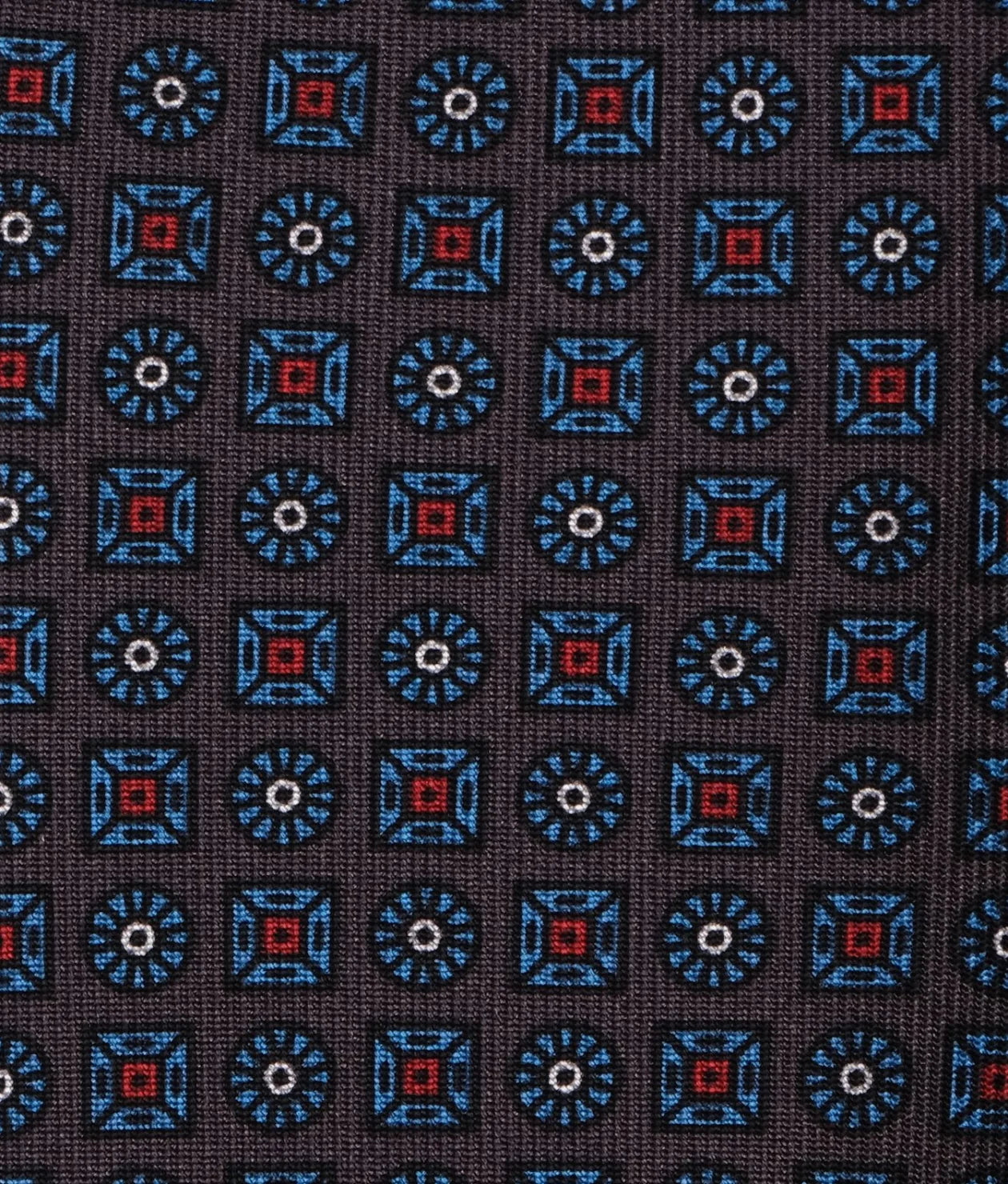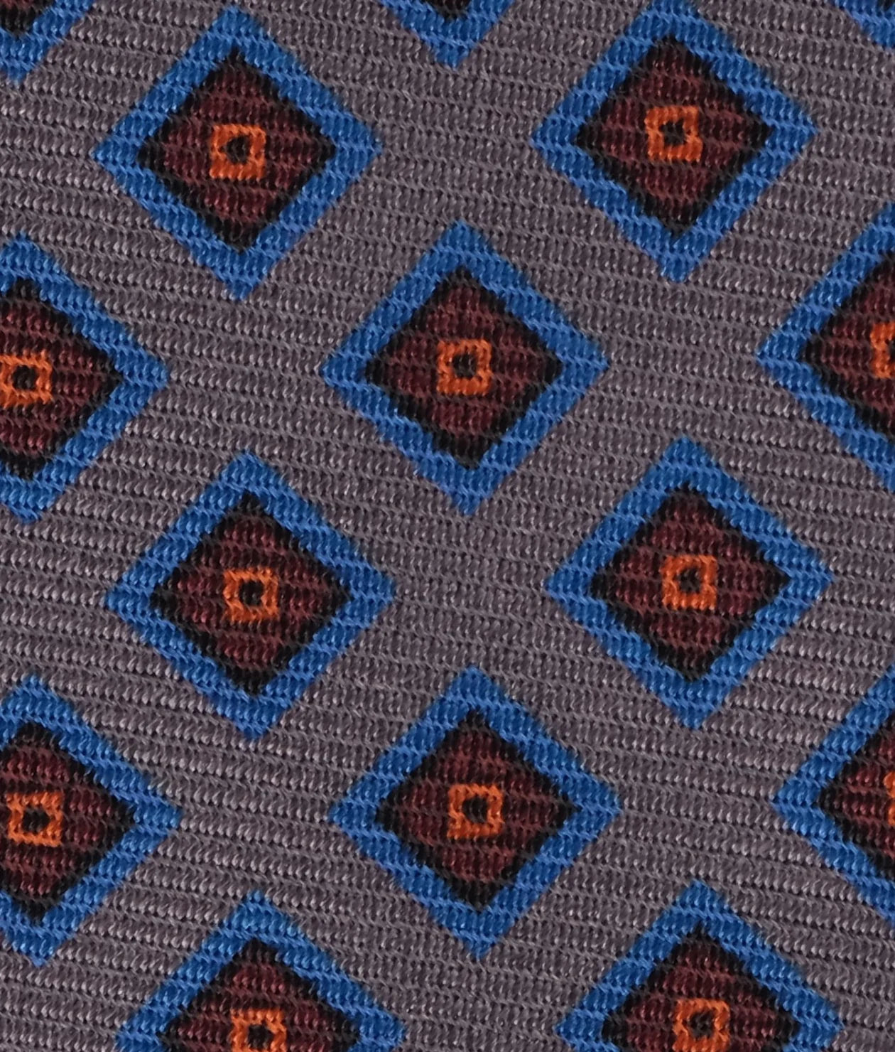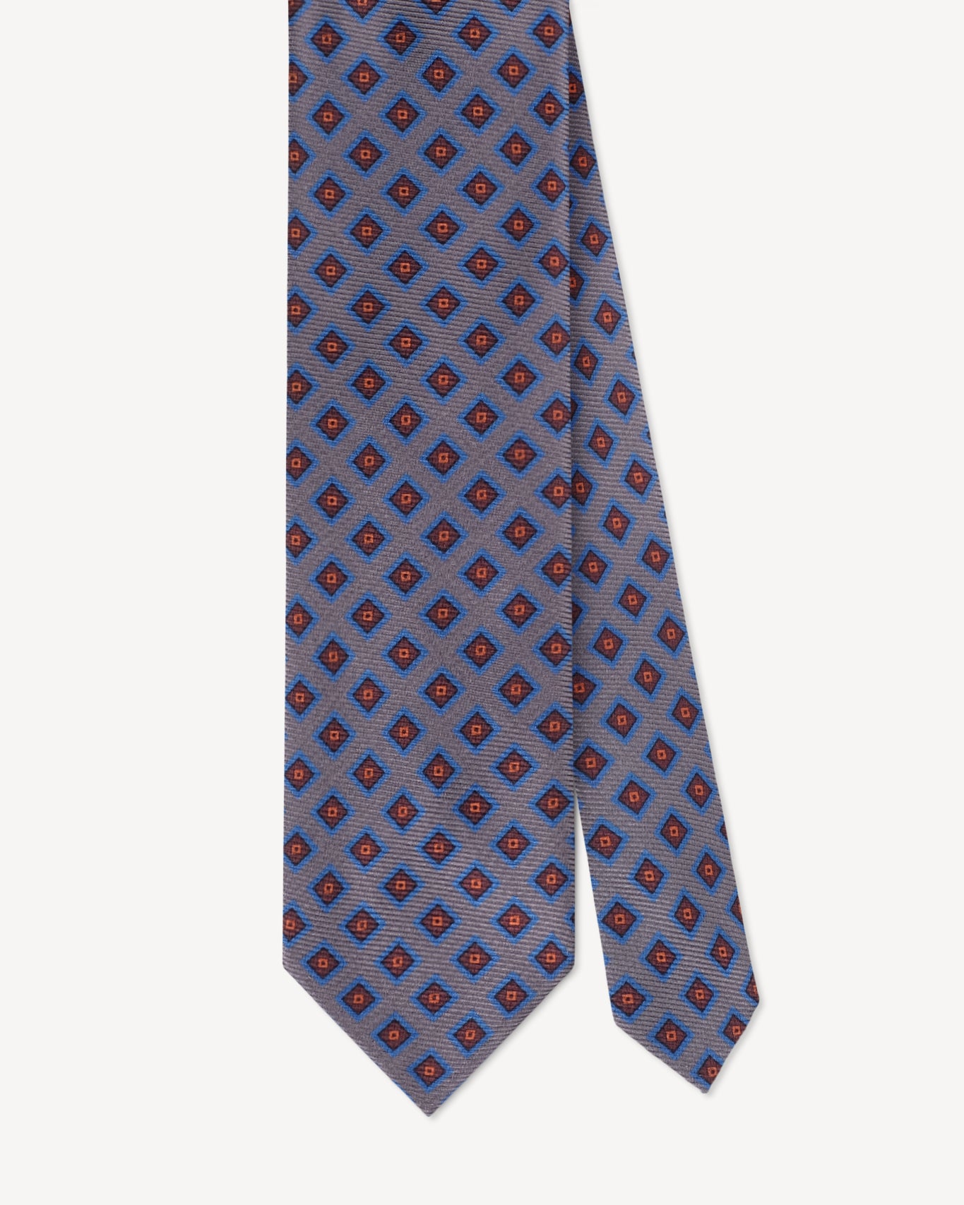 Cube Pattern Handprinted Ancient Madder Silk Tie – Grey