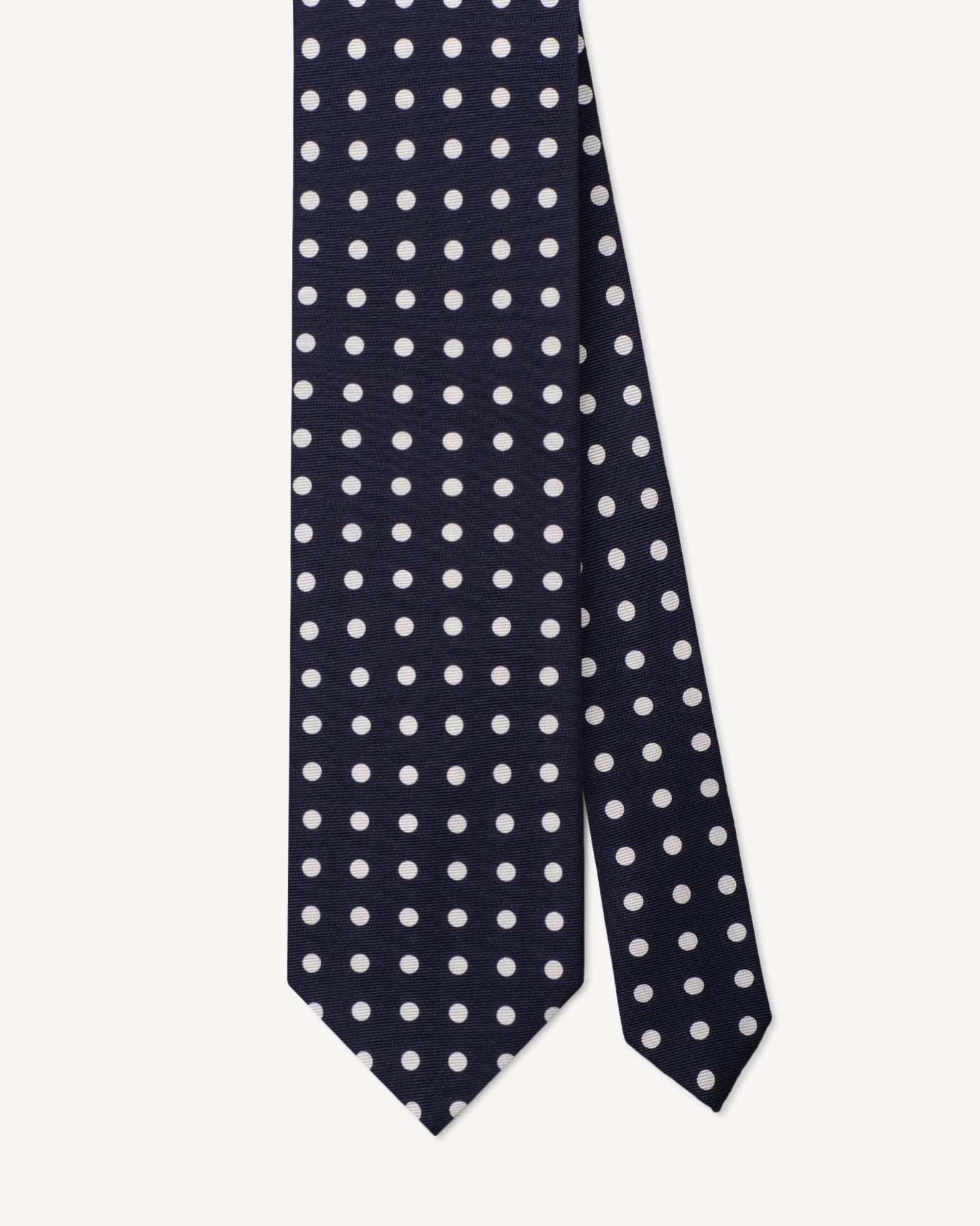 Classic Polka Dot Selftipped Silk Tie – Navy