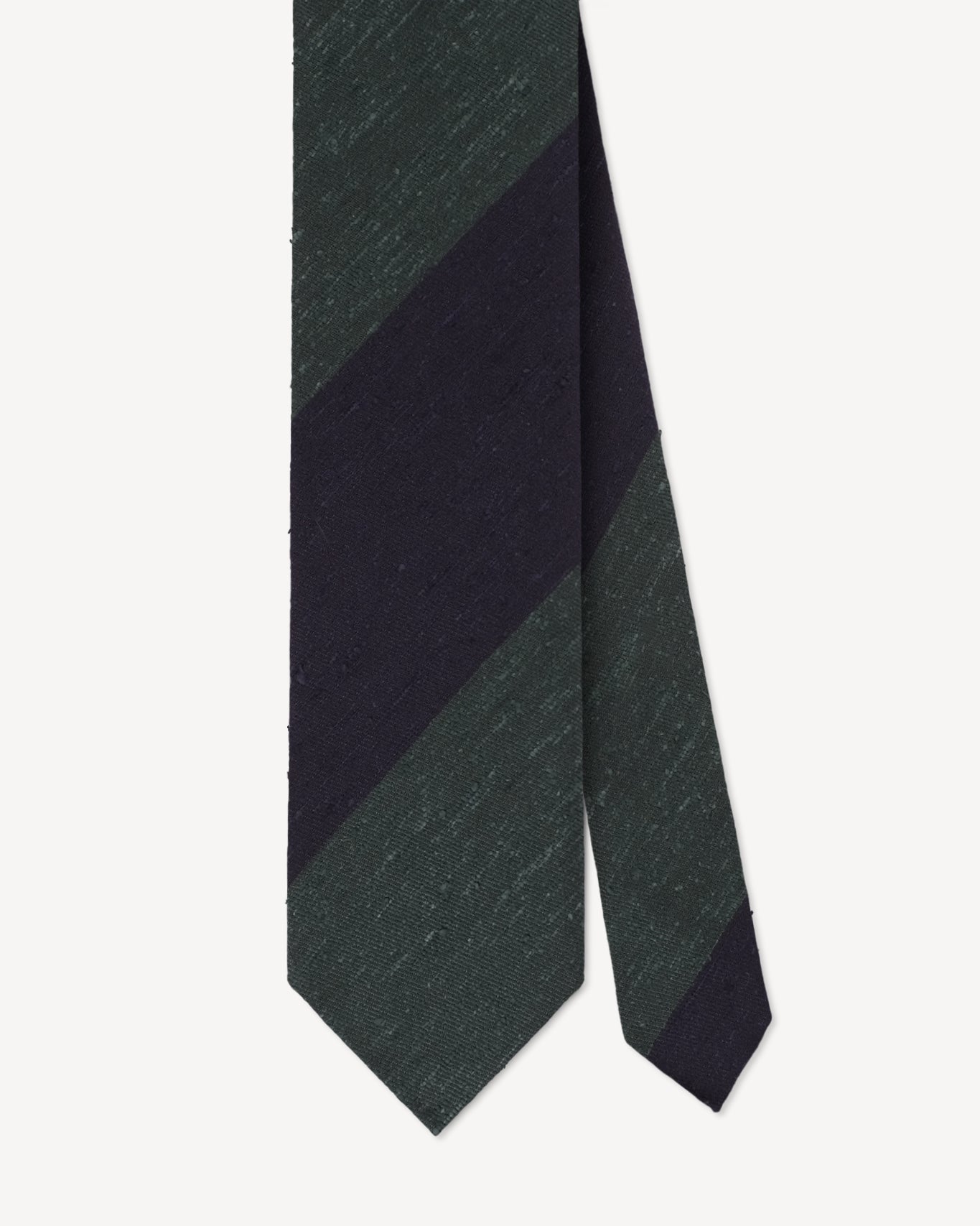 Block Stripe Handrolled Woven Shantung Tie – Navy/Forest