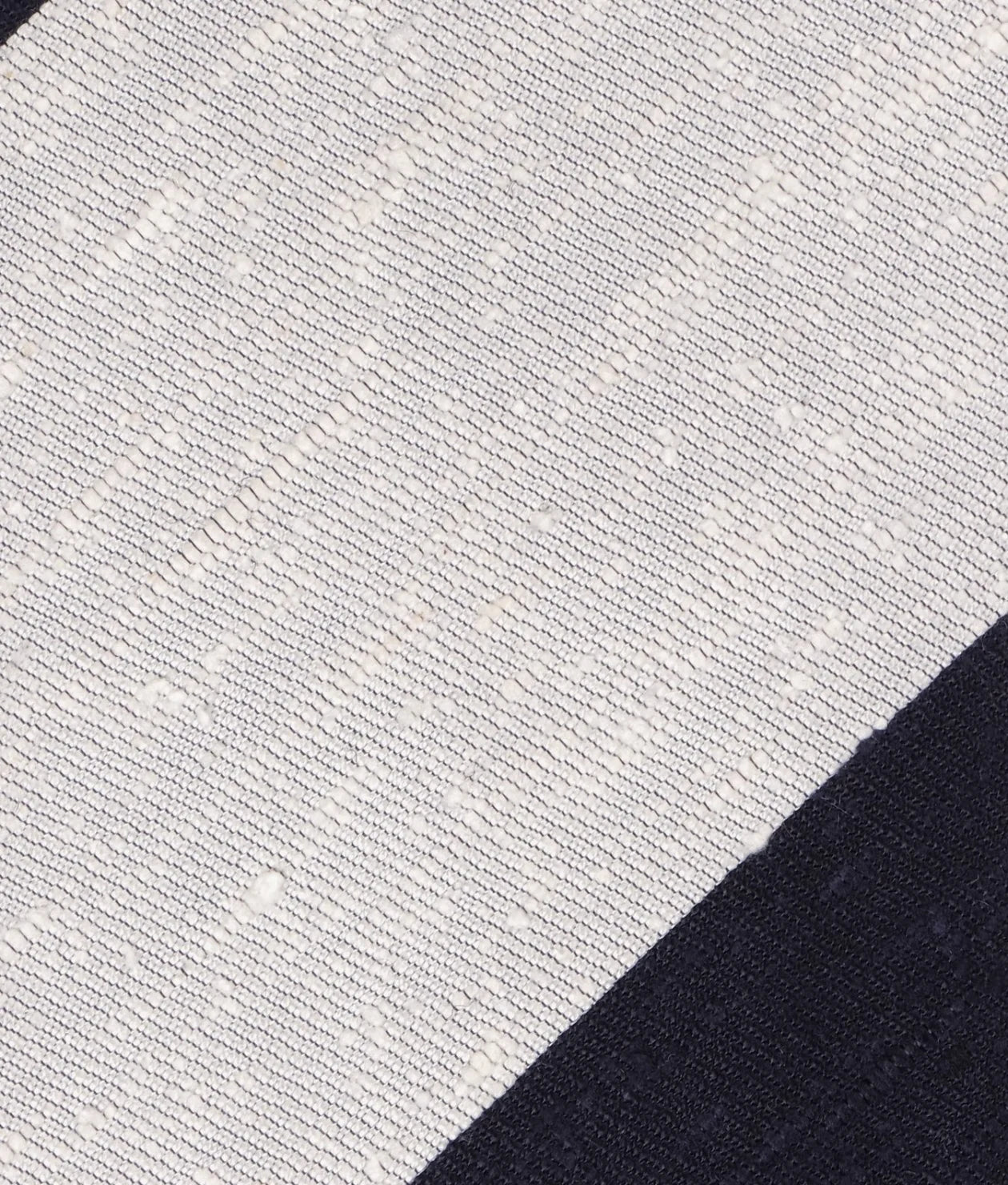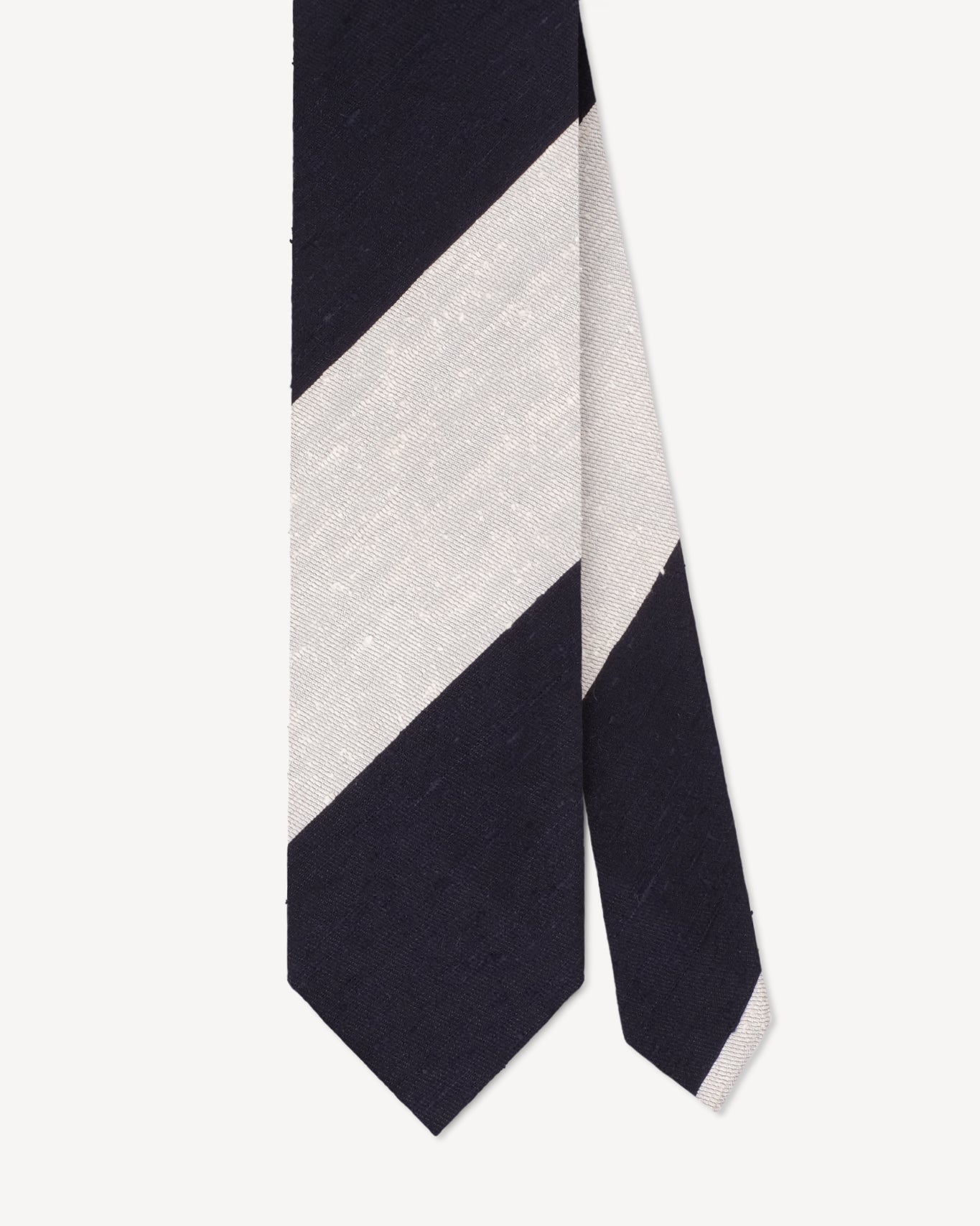Block Stripe Handrolled Woven Shantung Tie – Navy/White