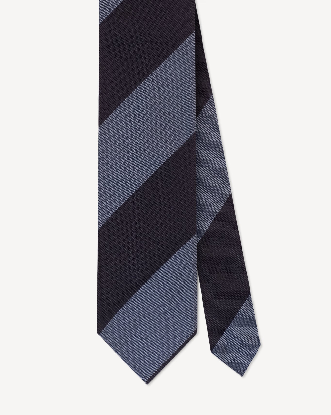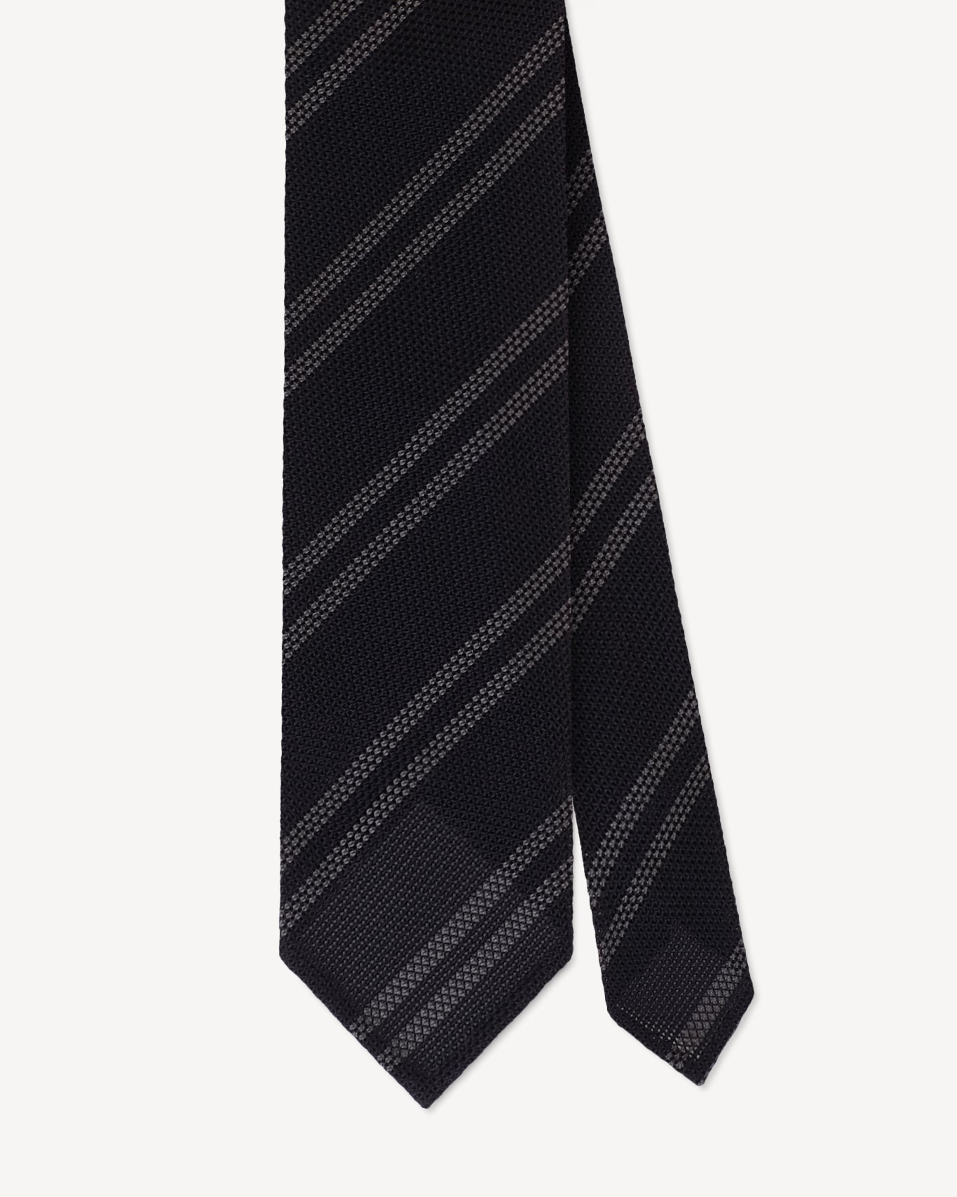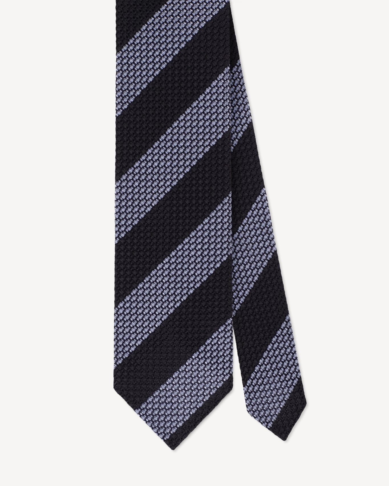 Artisan Stripe 3-fold Grenadine Tie – Navy/Grey Mix
