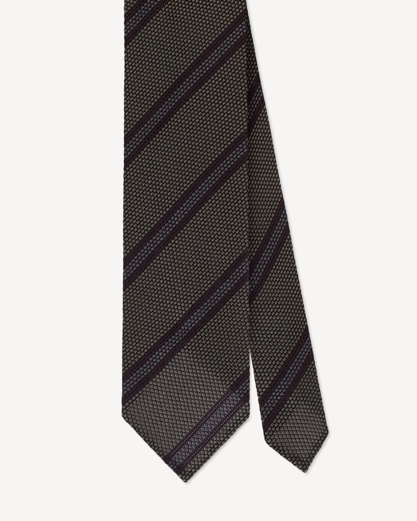 Artisan Stripe 3-fold Grenadine Tie – Olive Mix