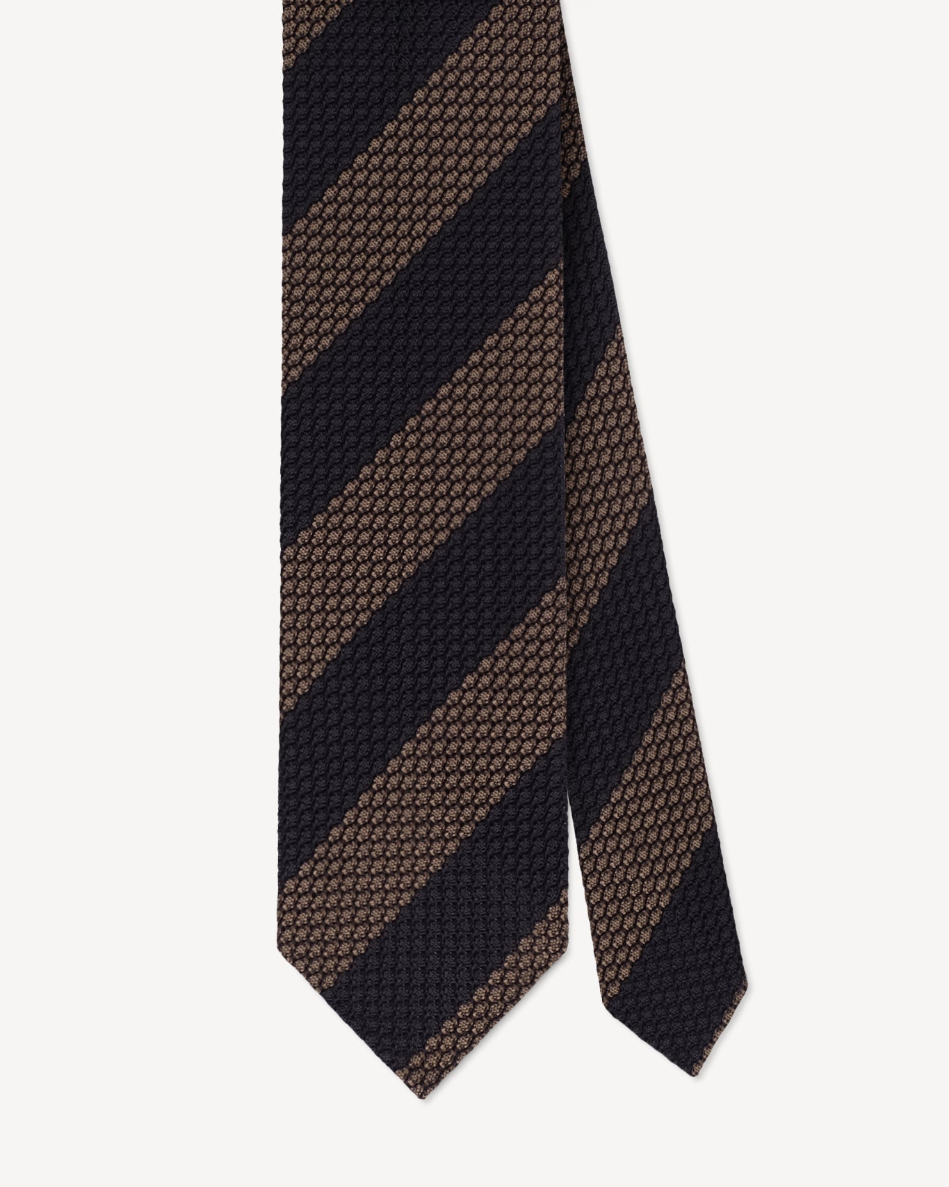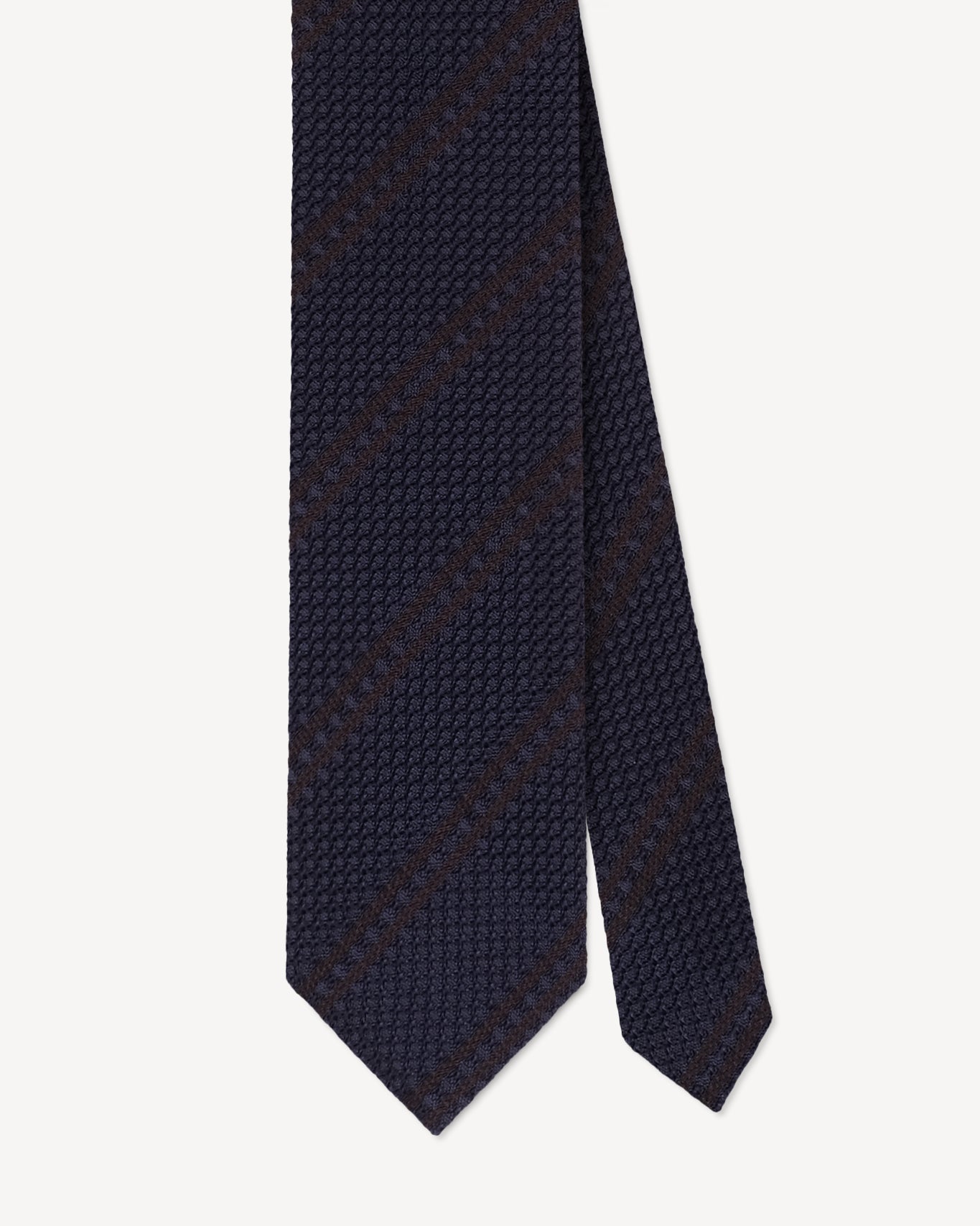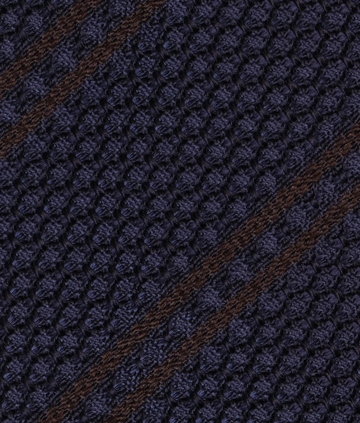 Classic Stripe 3-fold Grenadine Tie – Navy/Brown