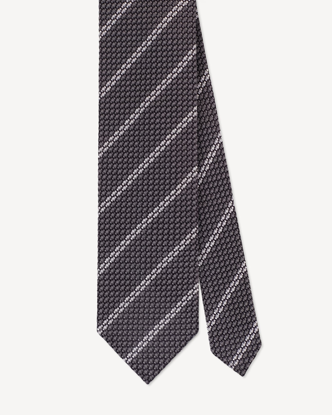 Classic Stripe 3-fold Grenadine Tie – Grey/Bianco