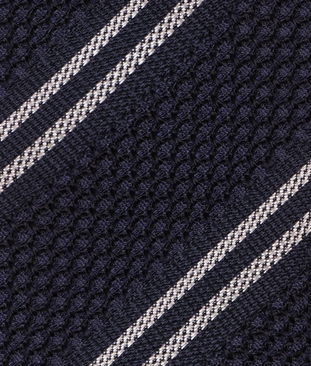 Block Stripe 3-fold Grenadine Tie – Navy/White