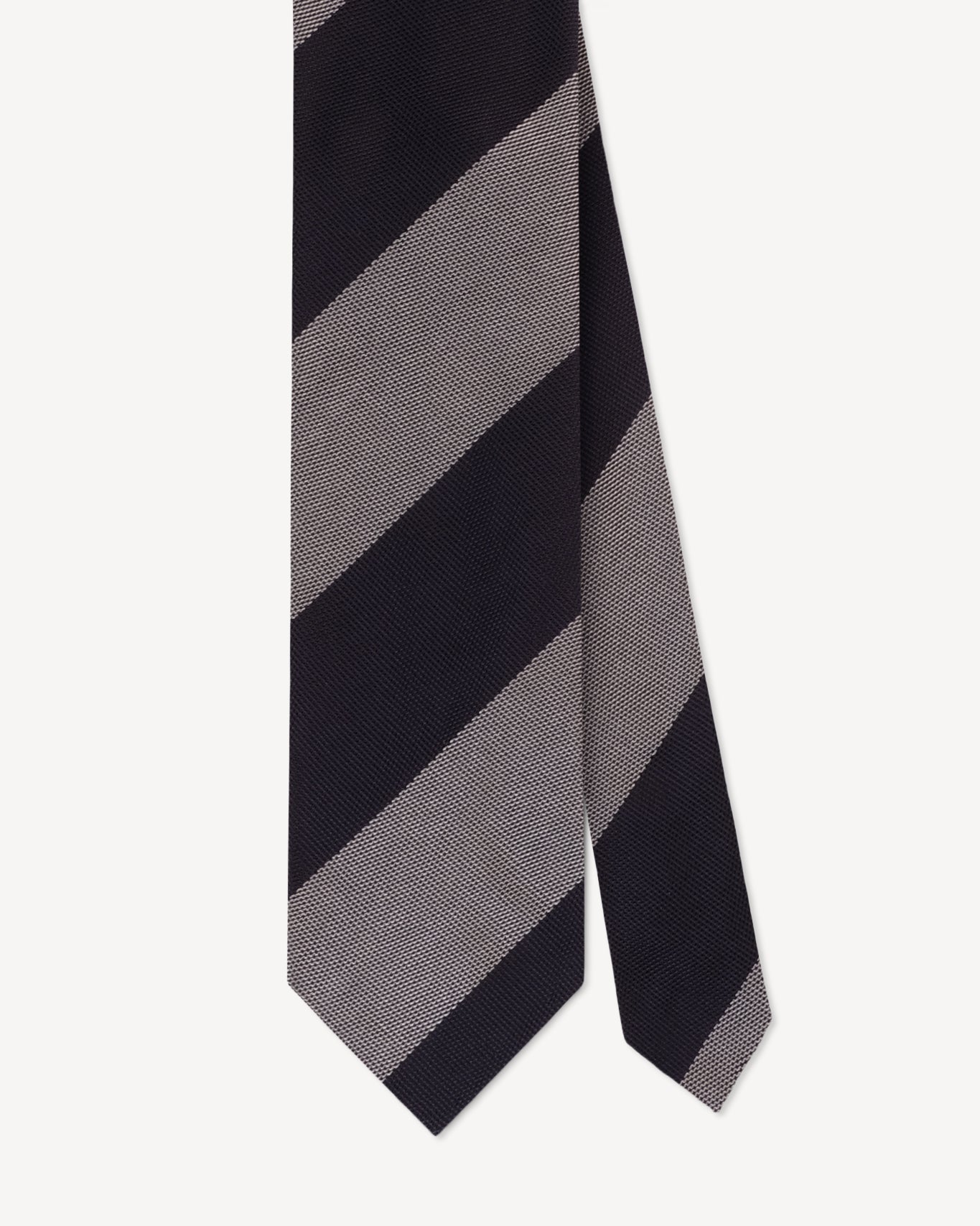 Classic Stripe 3-fold Grenadine Tie – Navy/Taupe