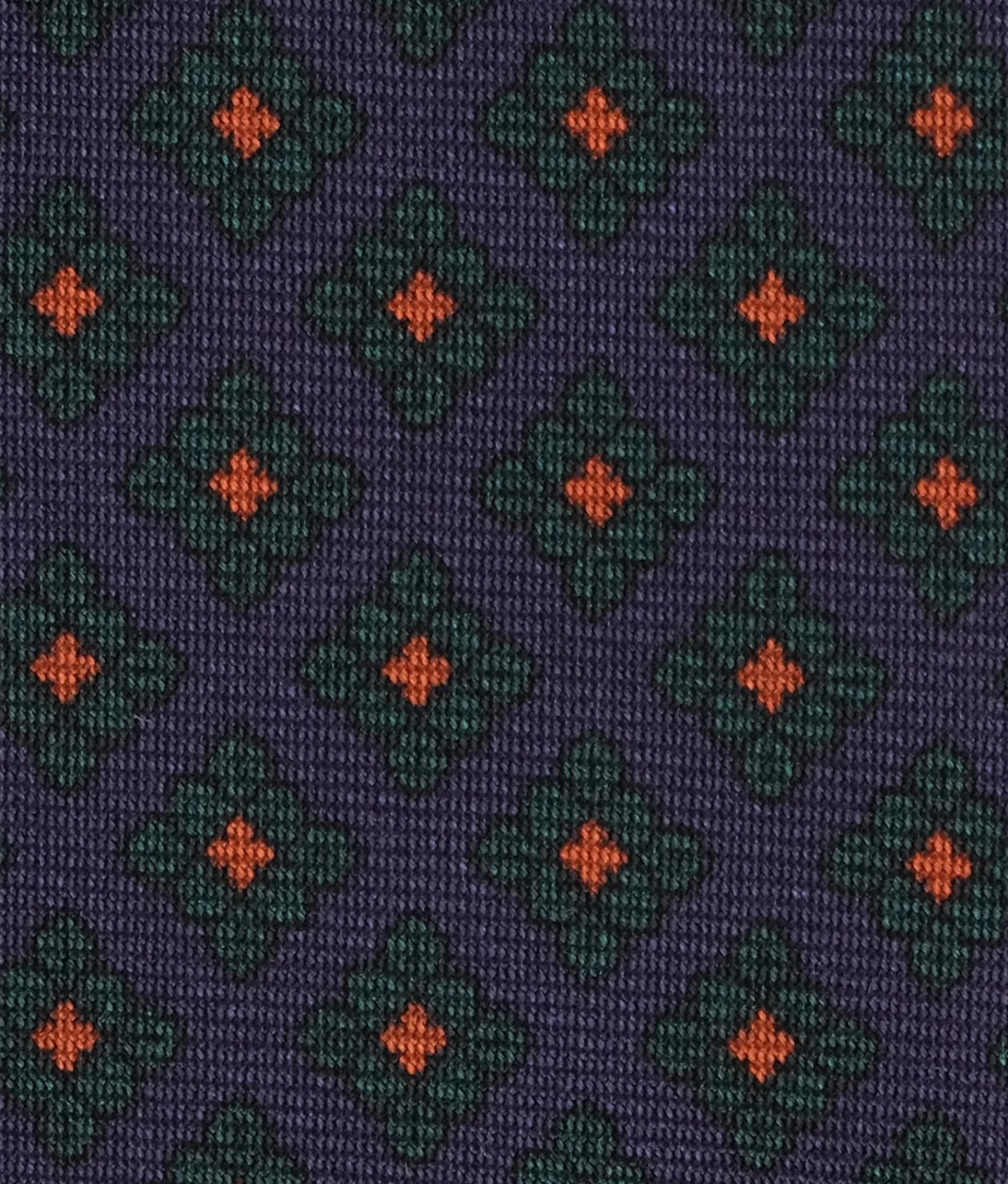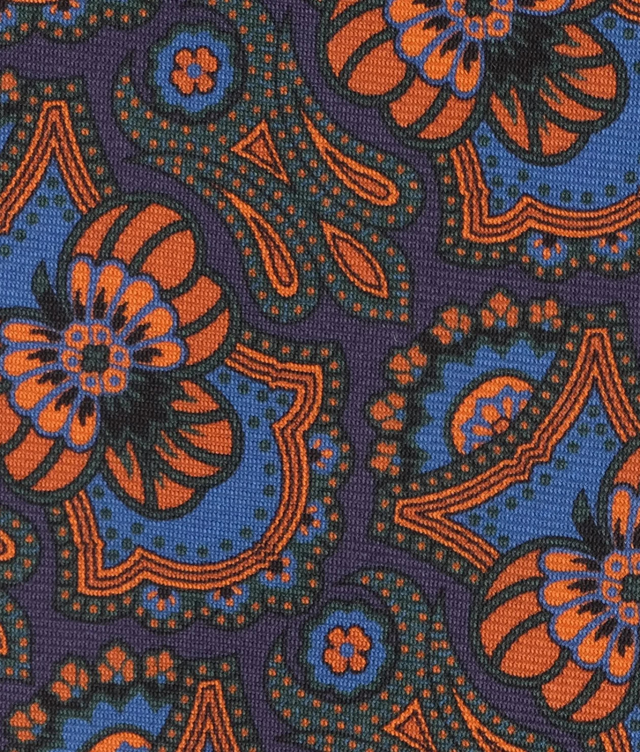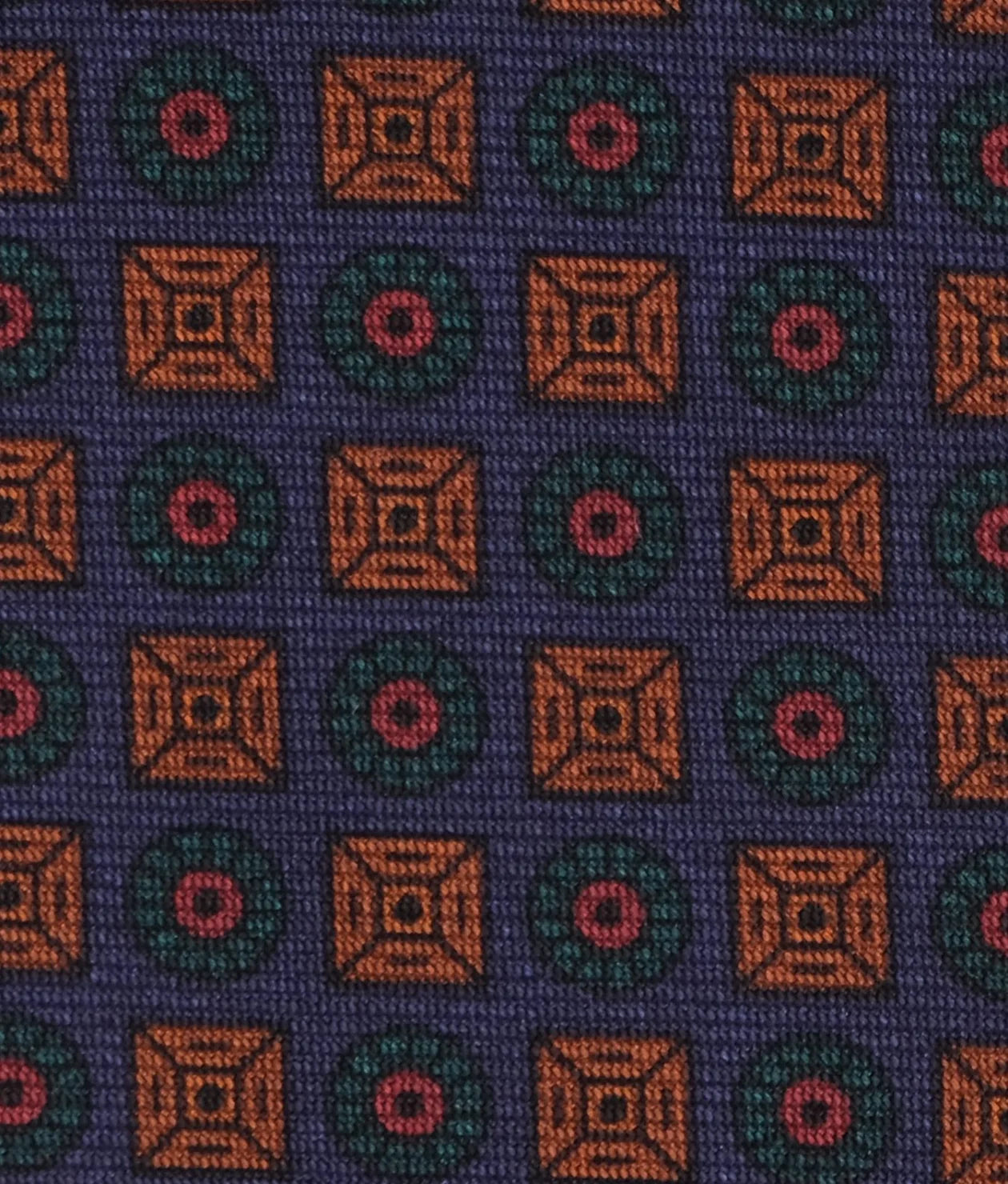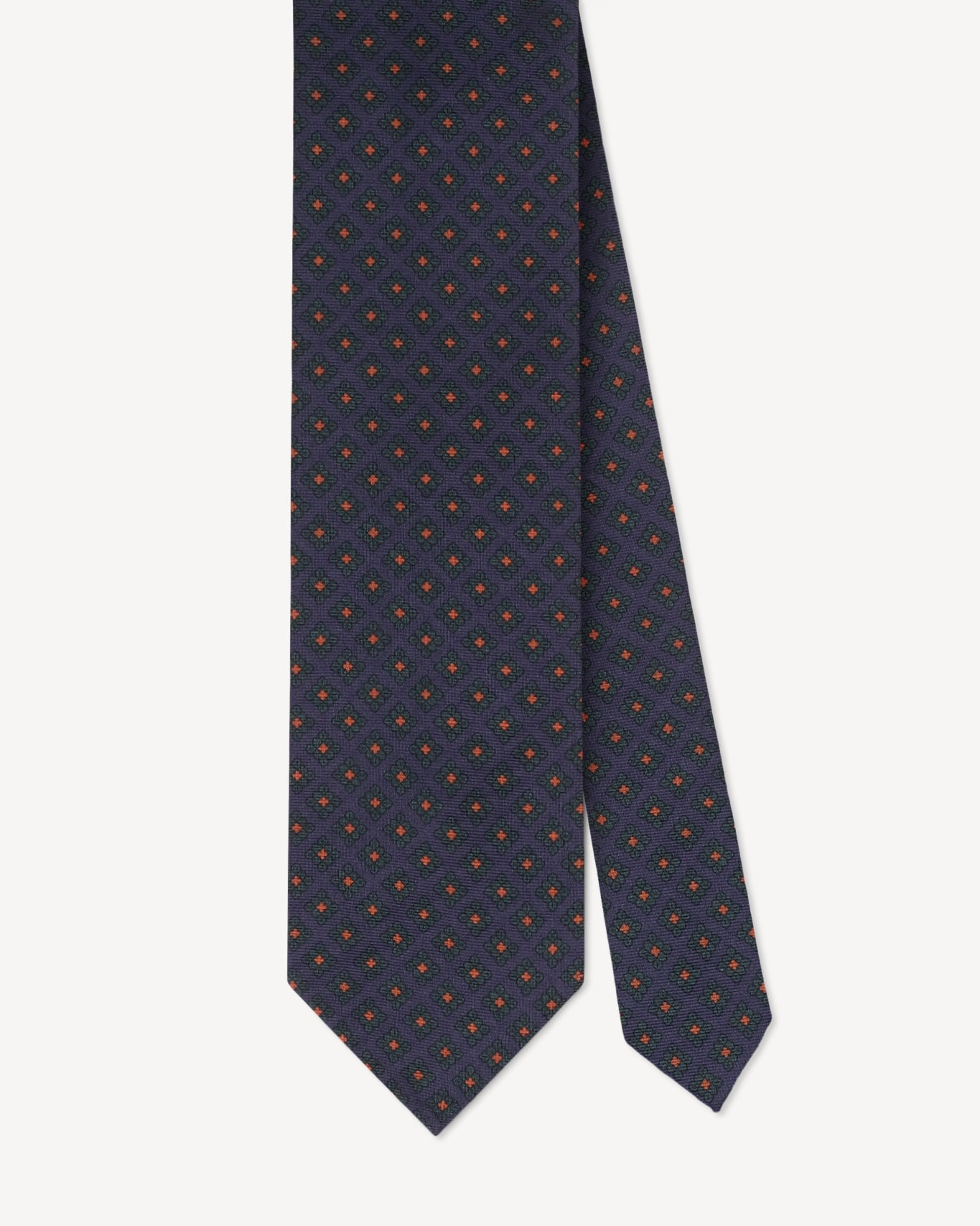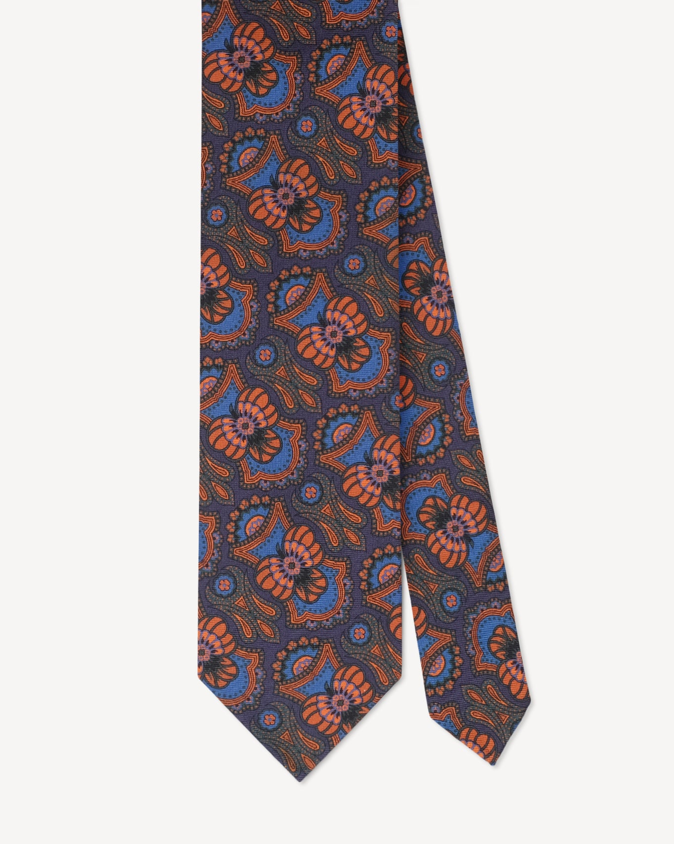 Diamond Floral Handprinted Ancient Madder SILK TIE – Navy Mix