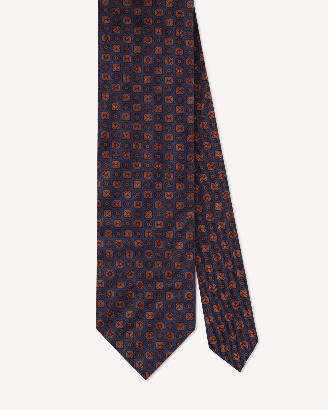 Diamond Handprinted Archive Madder Silk Tie – Navy