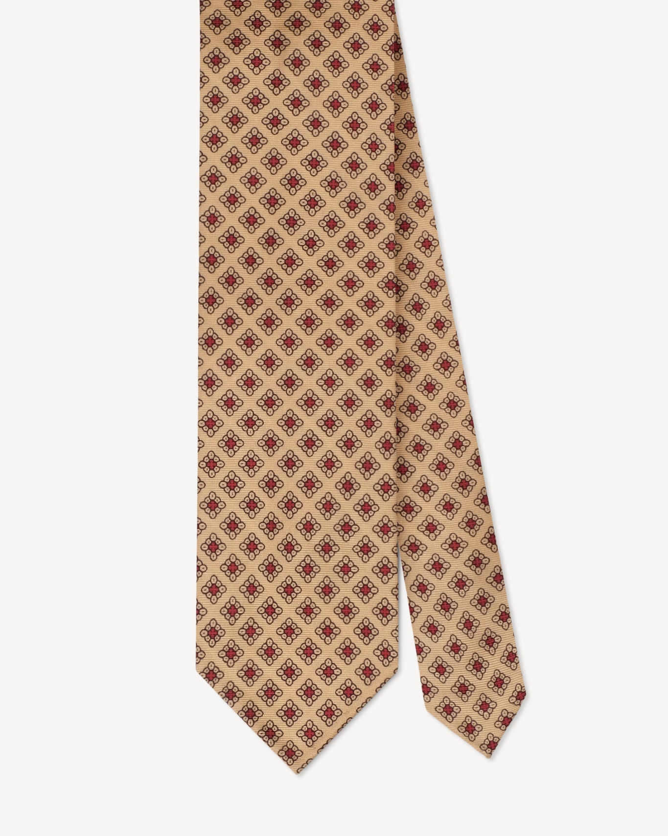 Diamond Pattern 3-fold Handprinted Untipped silk tie – Yellow