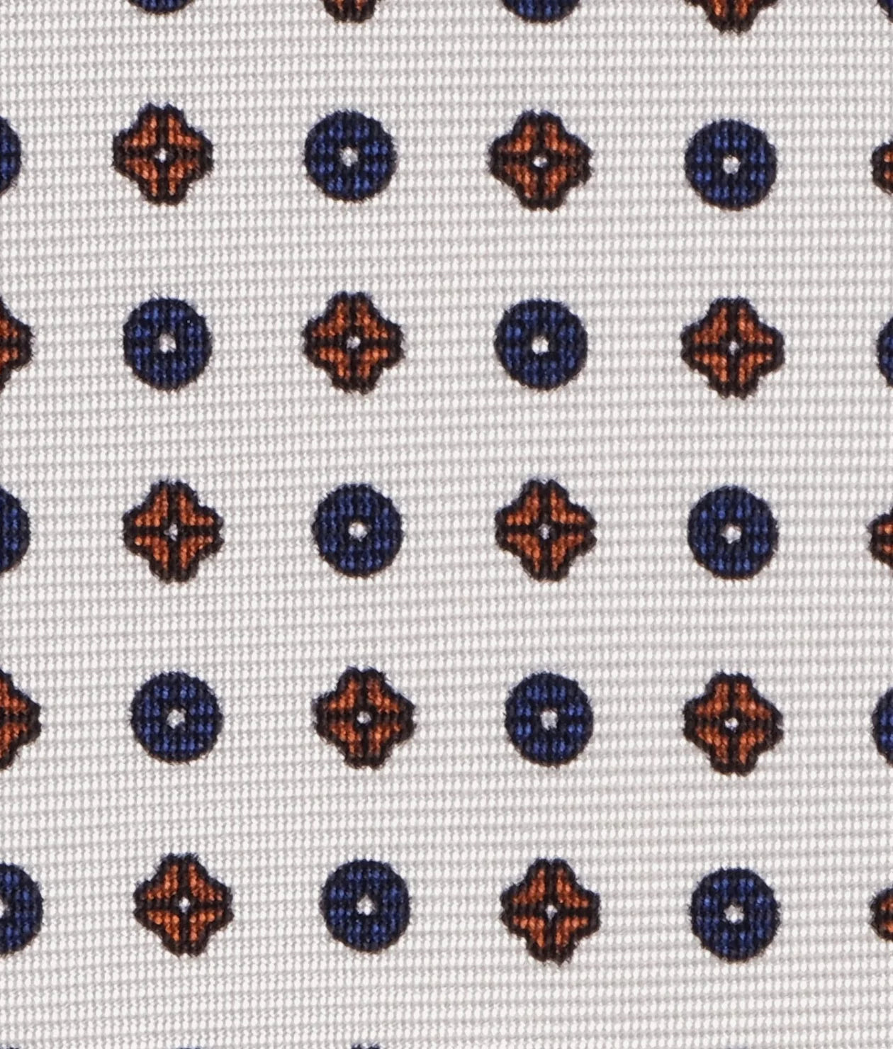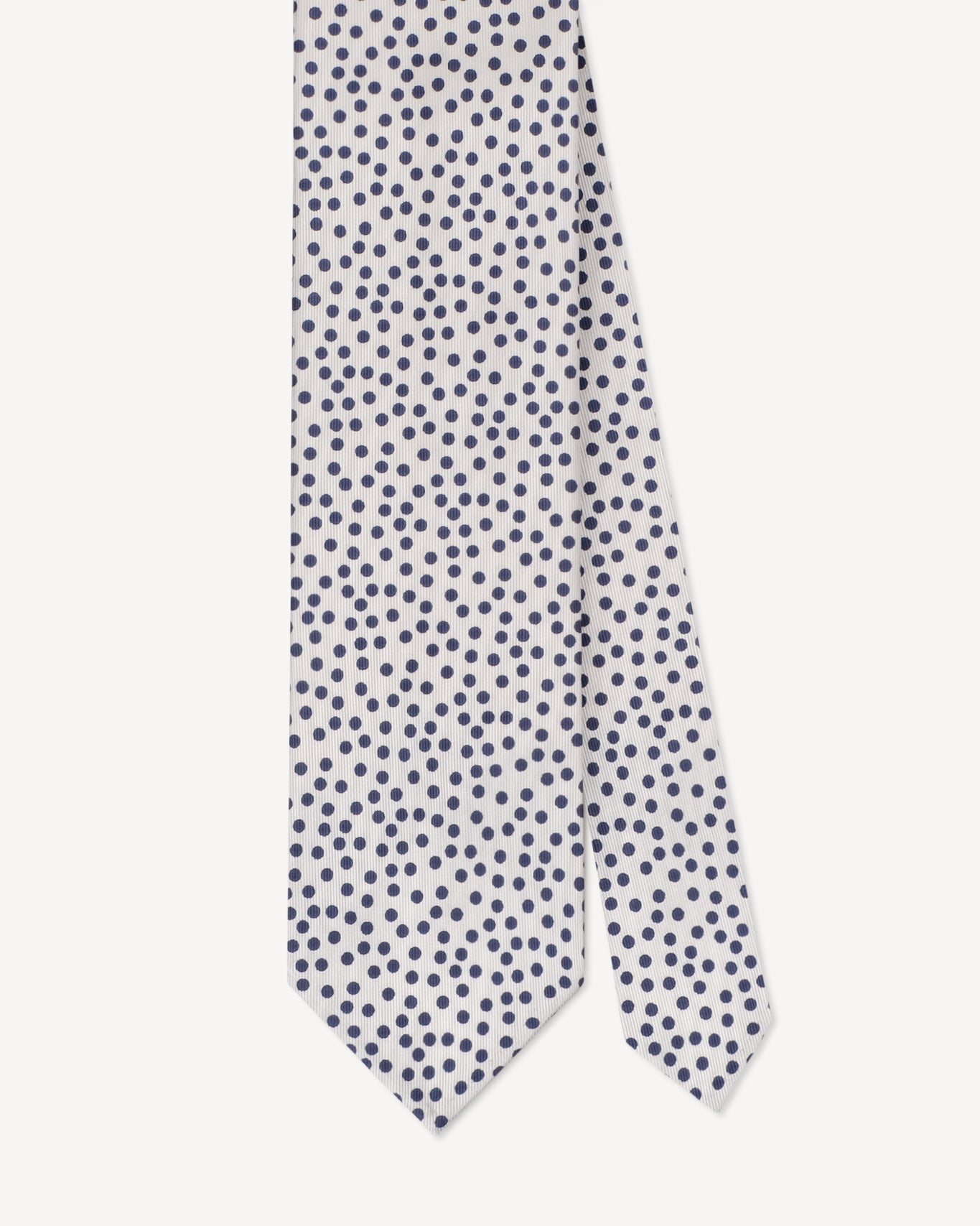 Multi Dot 3-fold Handprinted Untipped silk tie – White/Navy