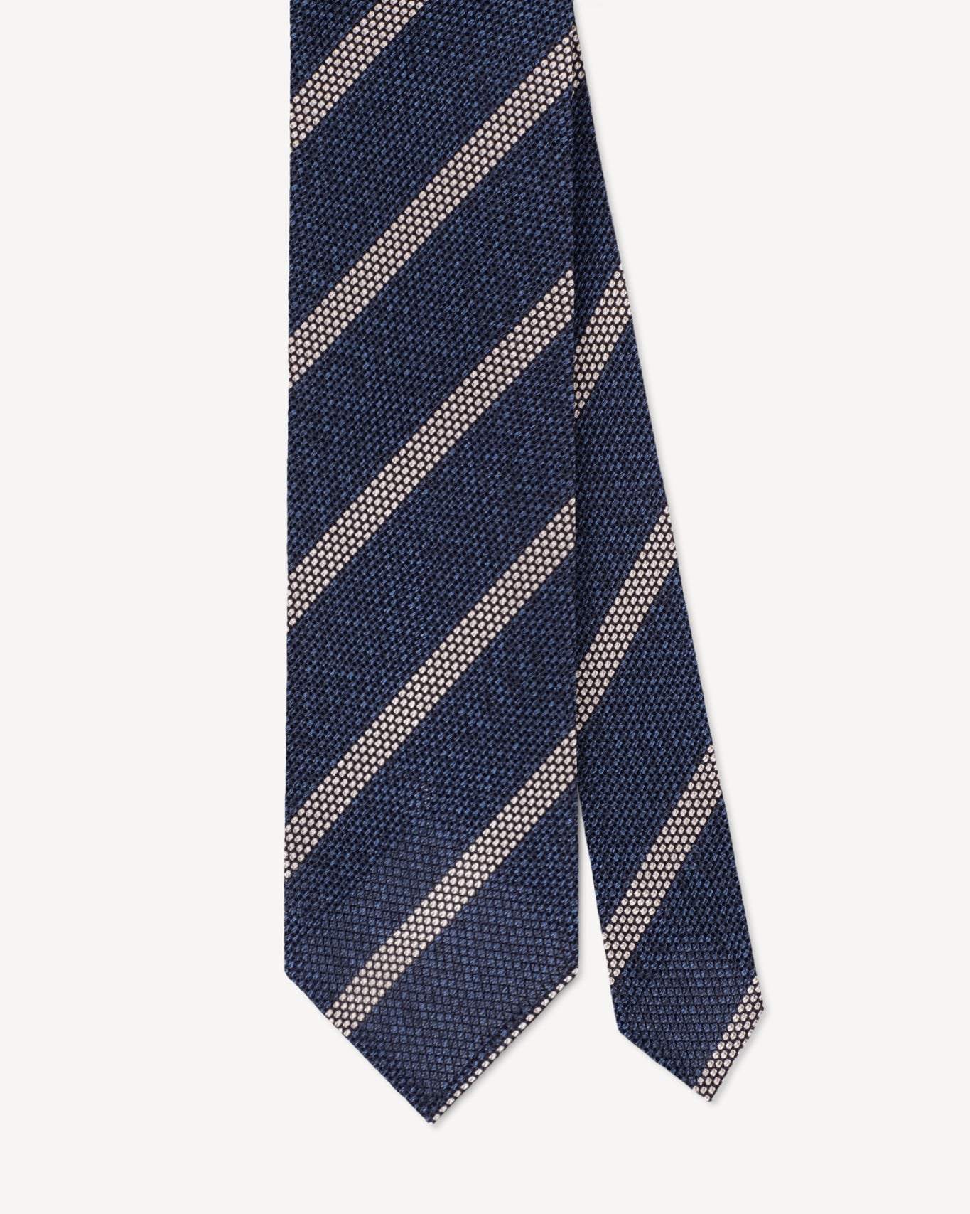 Multi Stripe 3-fold Grenadine Tie – Navy/White