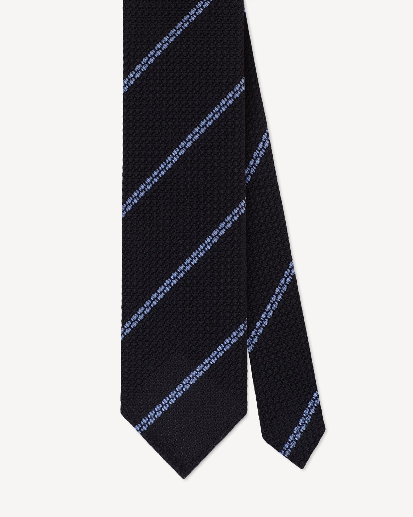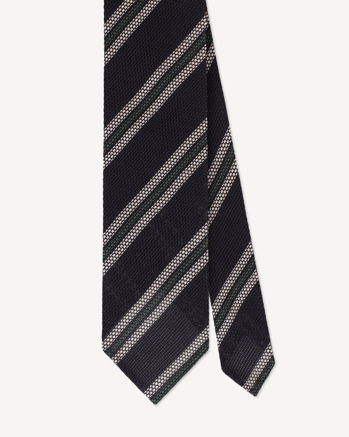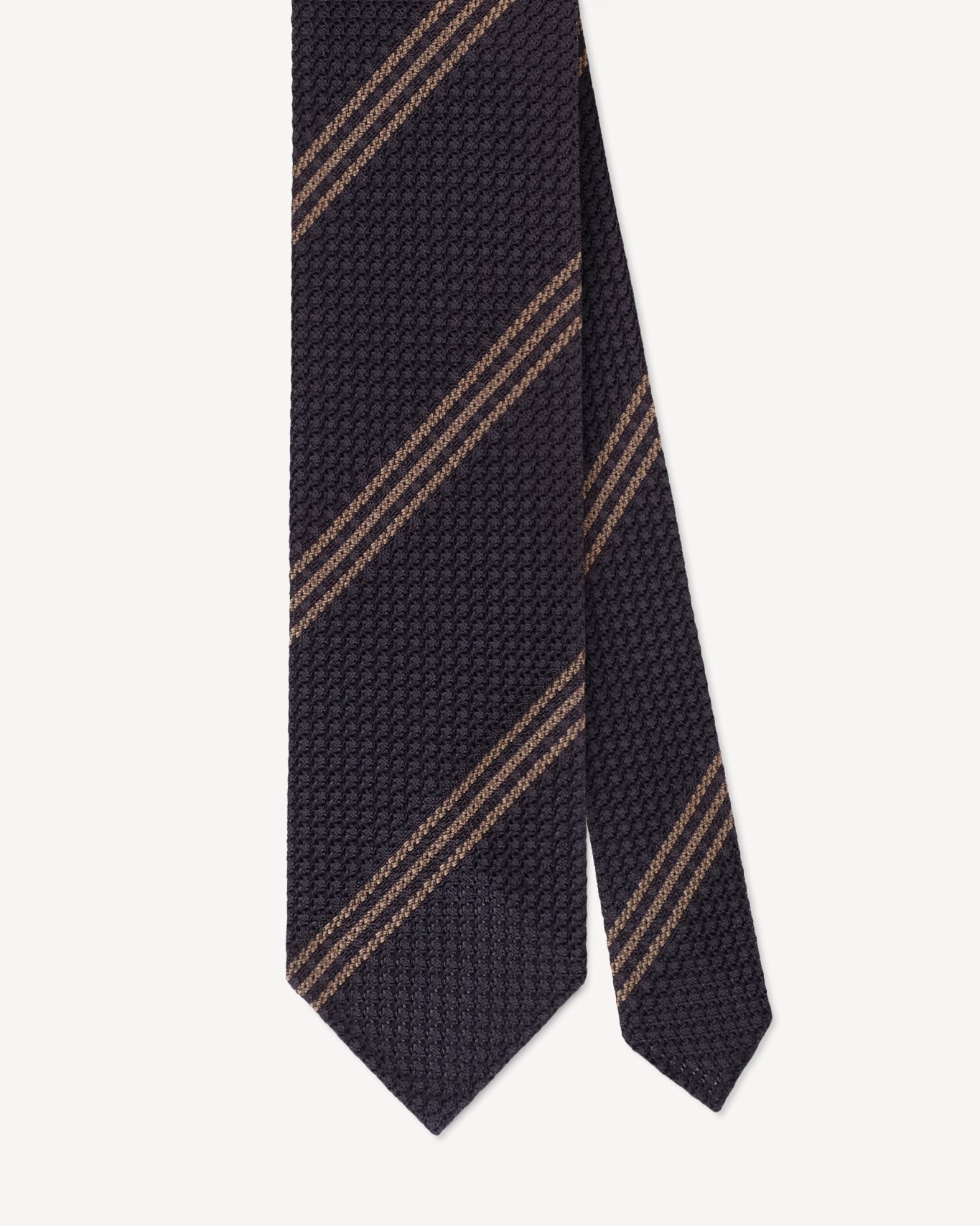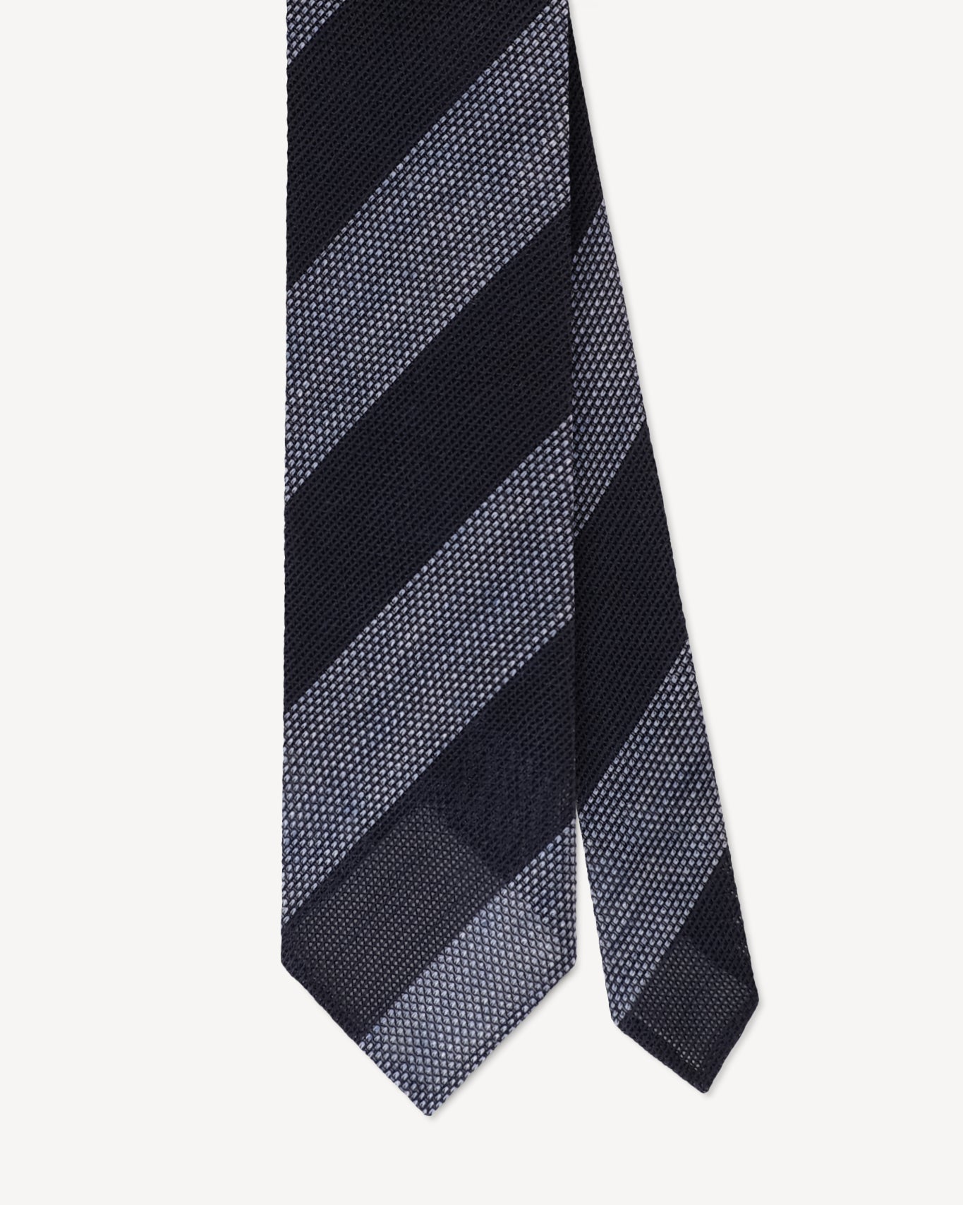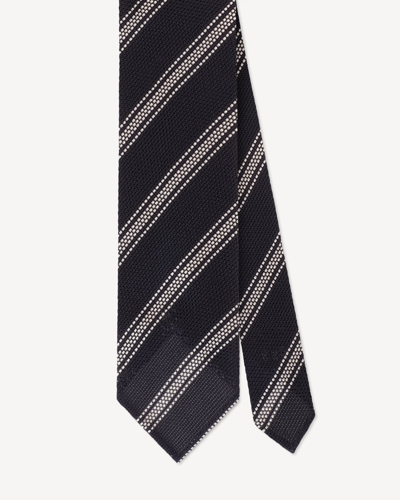 Contrast Stripe 3-fold Grenadine Tie – Navy