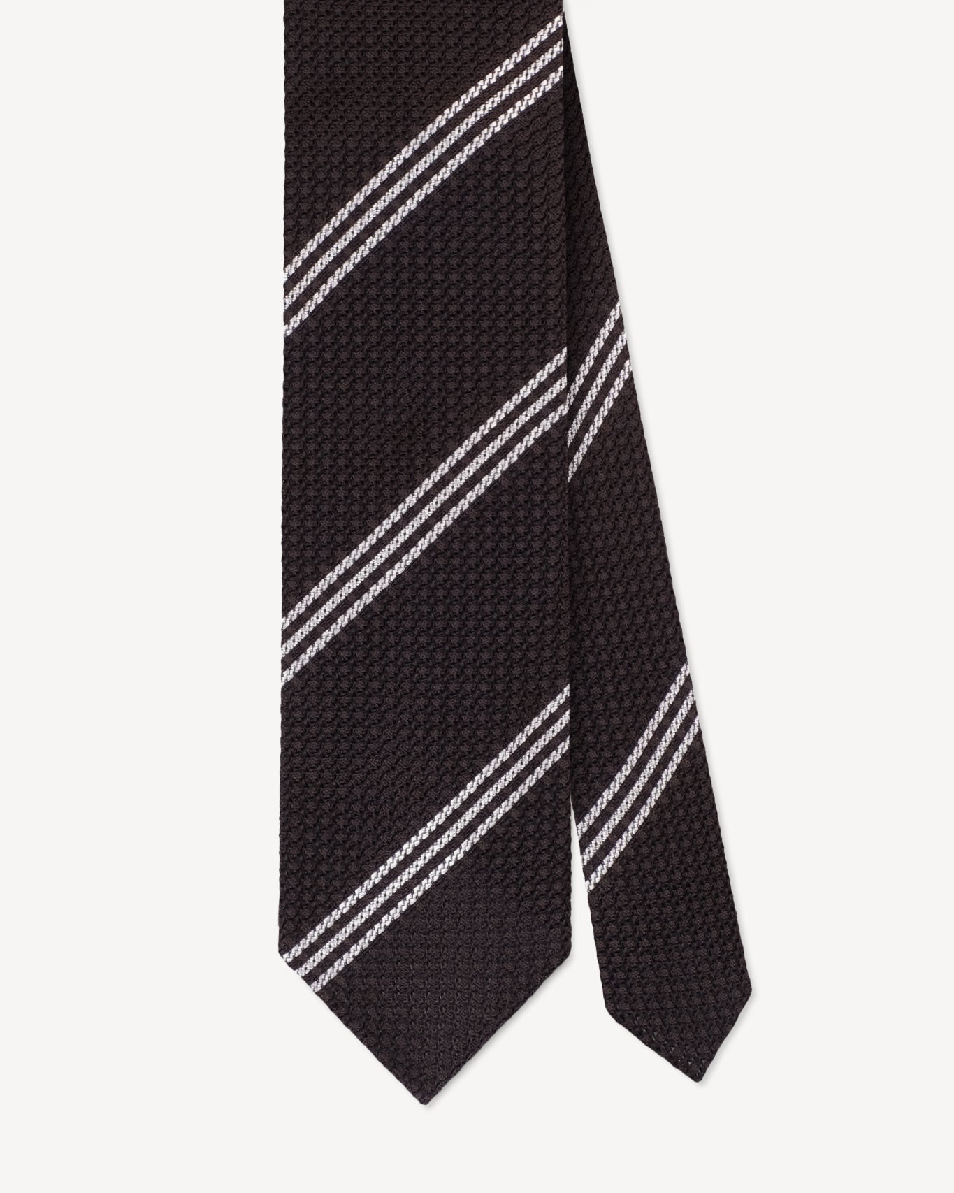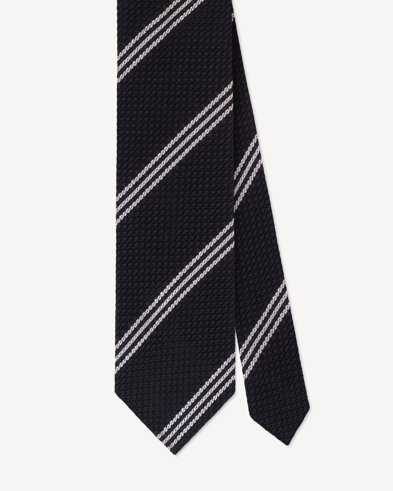 Classic Stripe 3-fold Grenadine Tie – Grey/Bianco