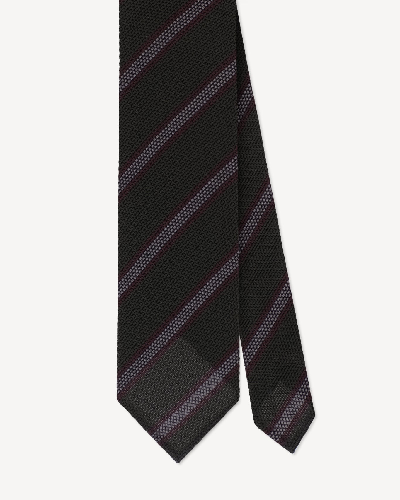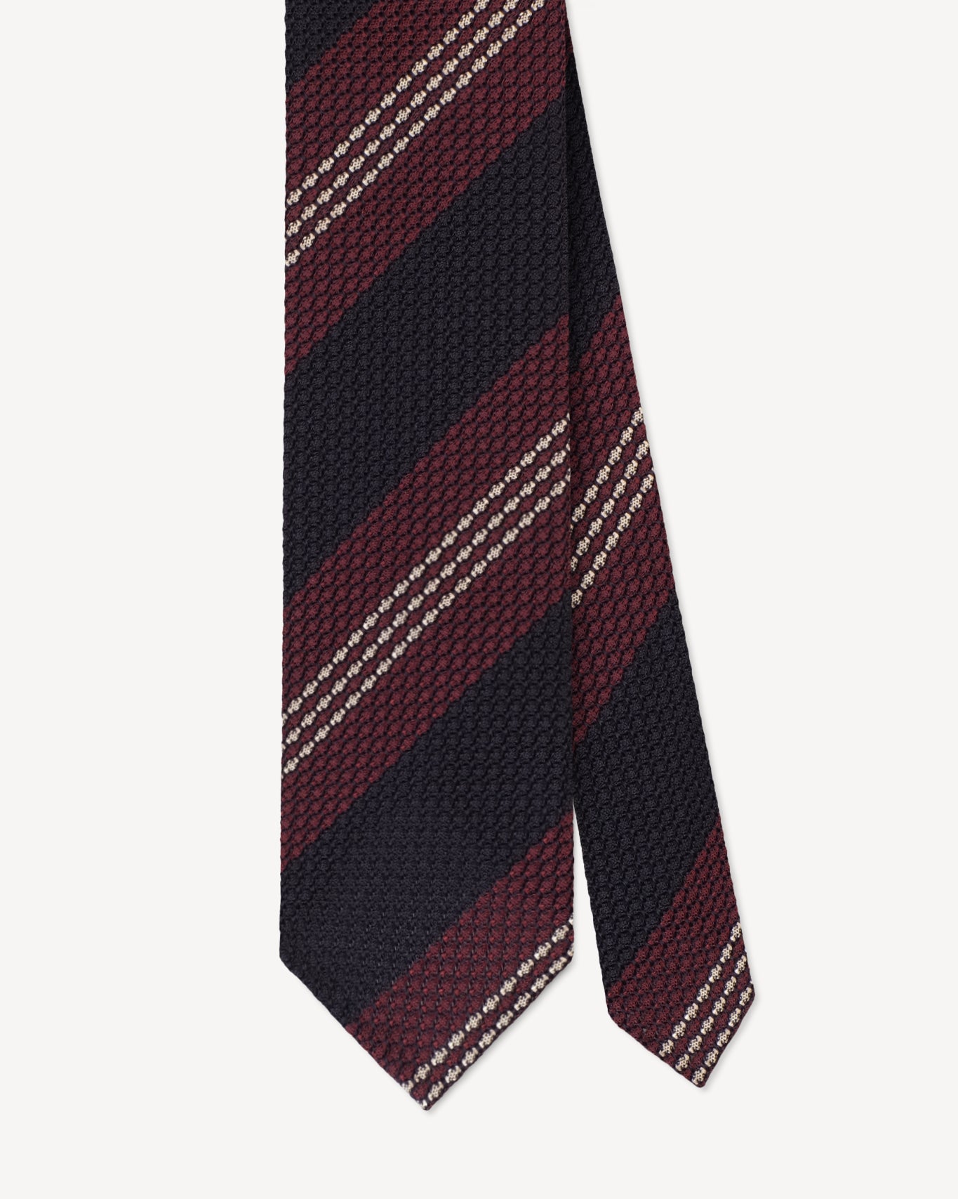 Mix Stripe 3-fold Grenadine Tie – Wine/Navy Mix
