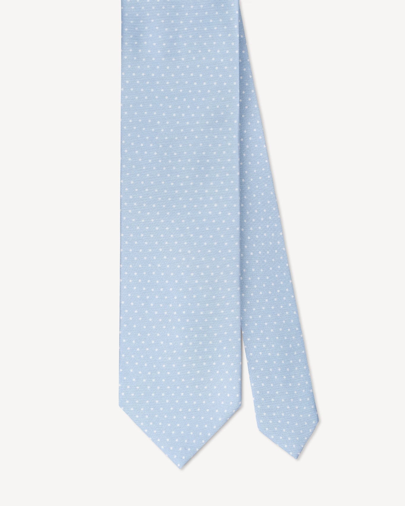 Pin Dot Selftipped Silk Tie– Light Blue/White