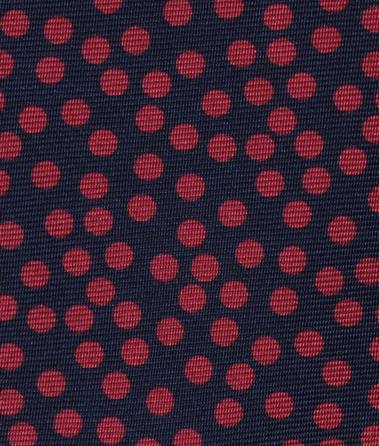 Multi Dot 3-fold Handprinted Selftipped silk tie – Navy/Red