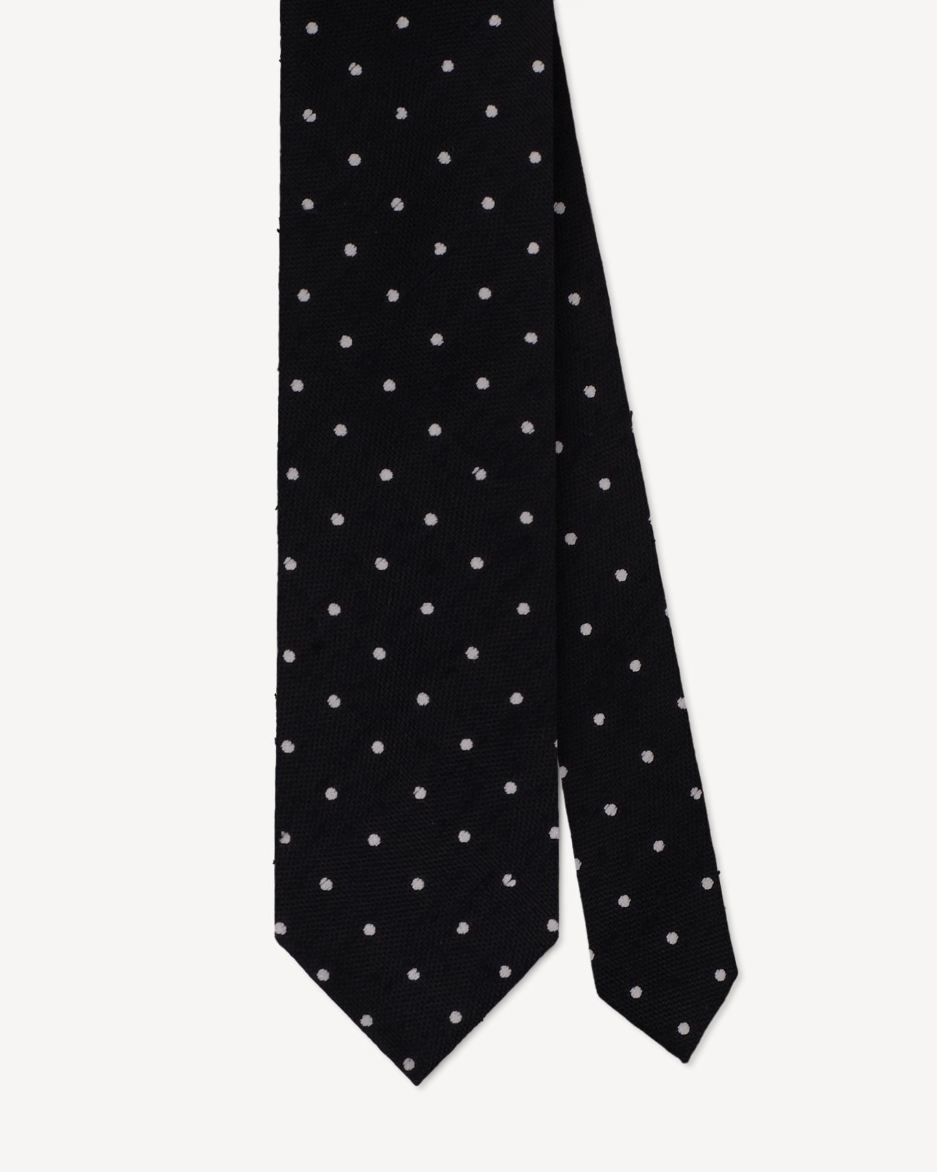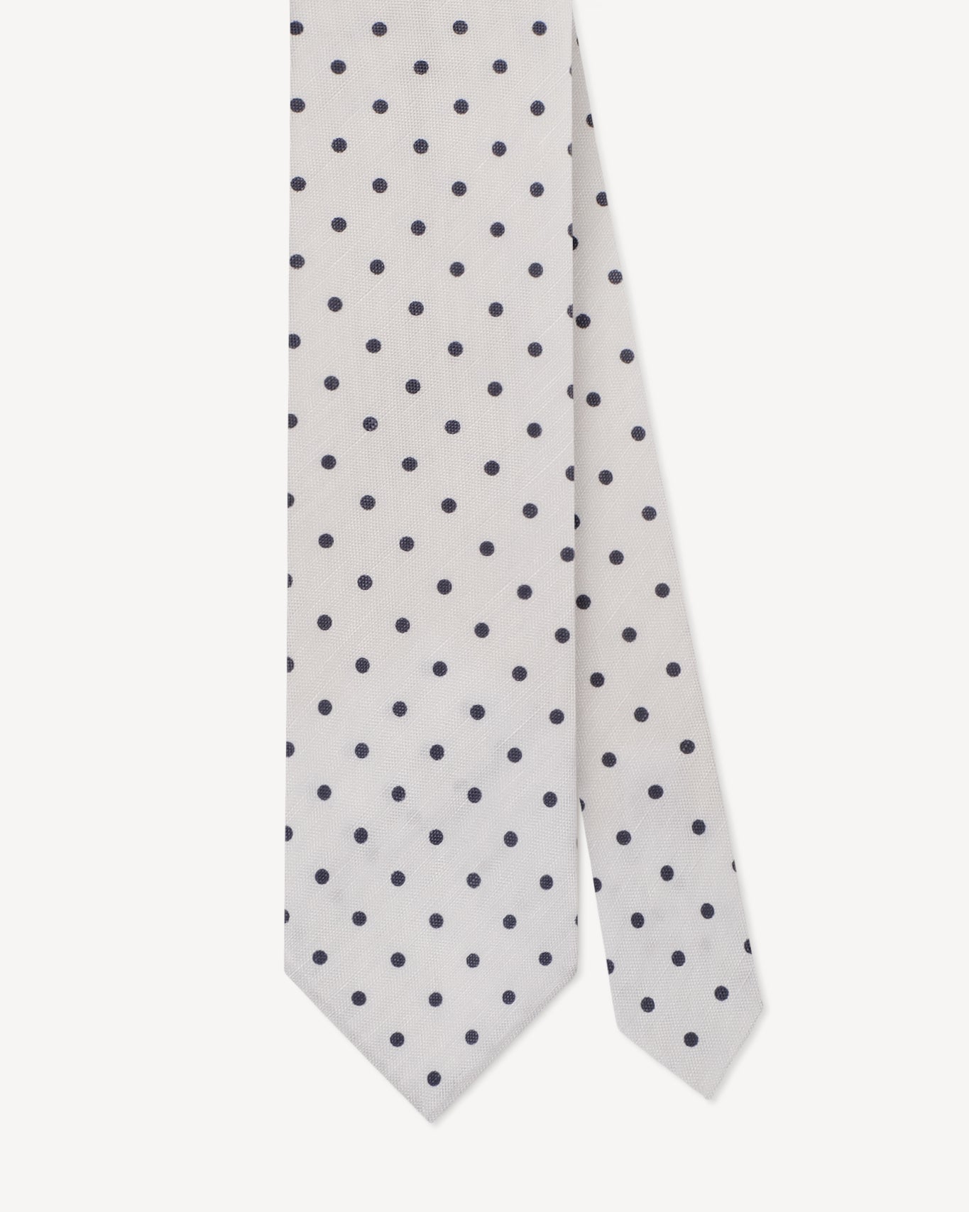 Polka Dot Handrolled Woven Shantung Tie – Navy/White