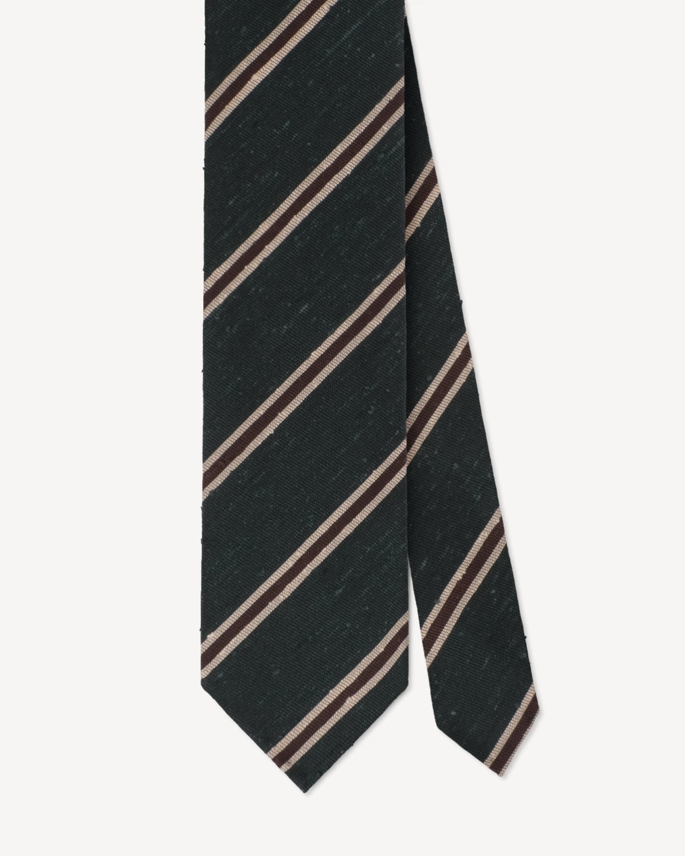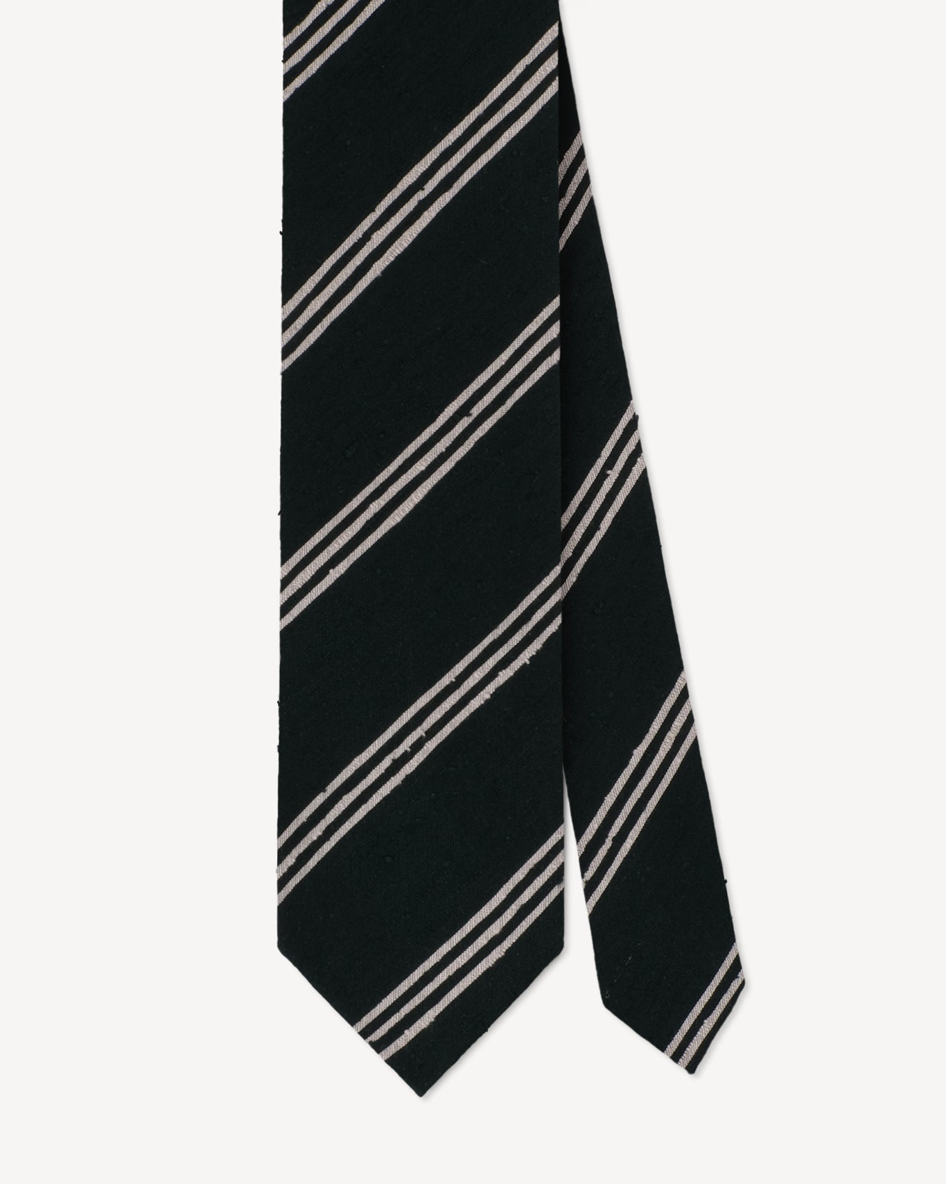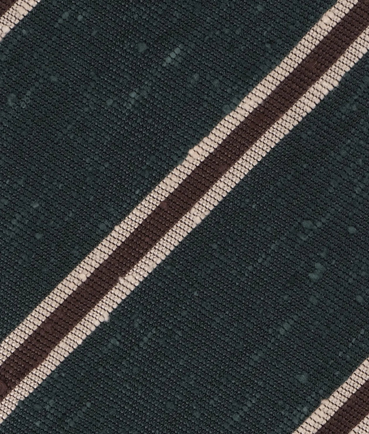 Multi Stripe Handrolled Woven Shantung Tie – Forest/White
