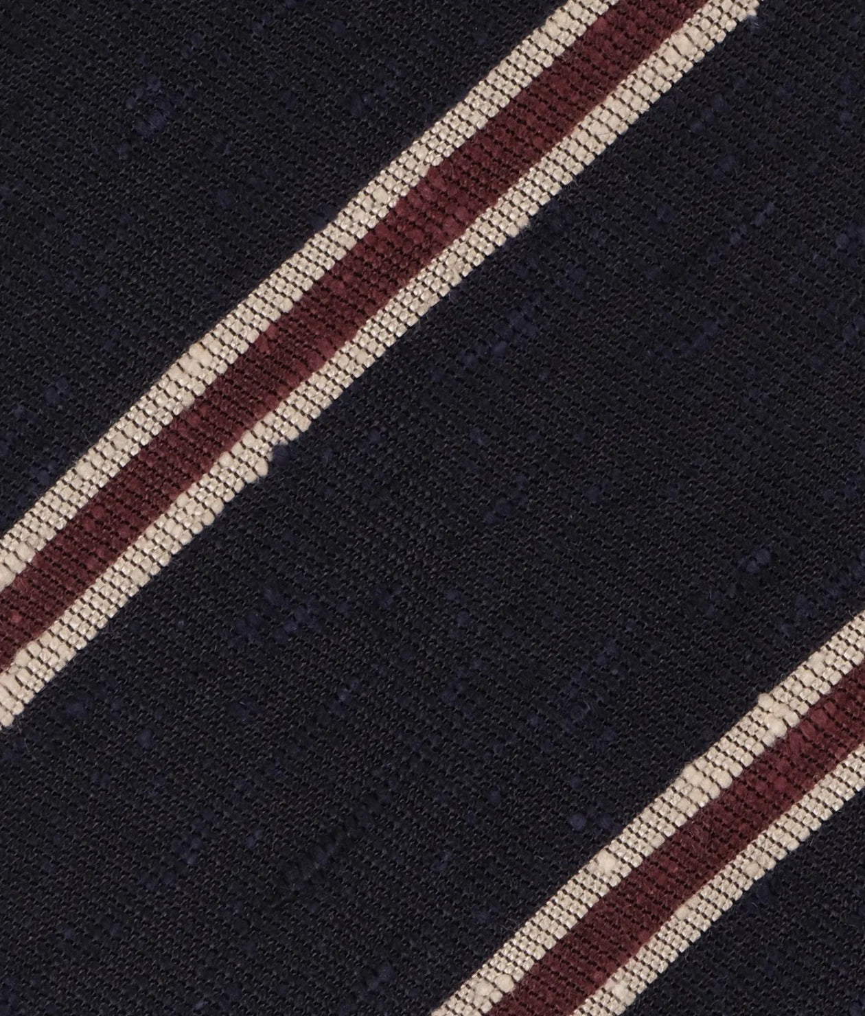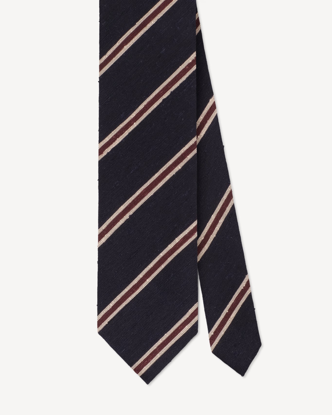 Multi Stripe Handrolled Woven Shantung Tie – Navy/Wine