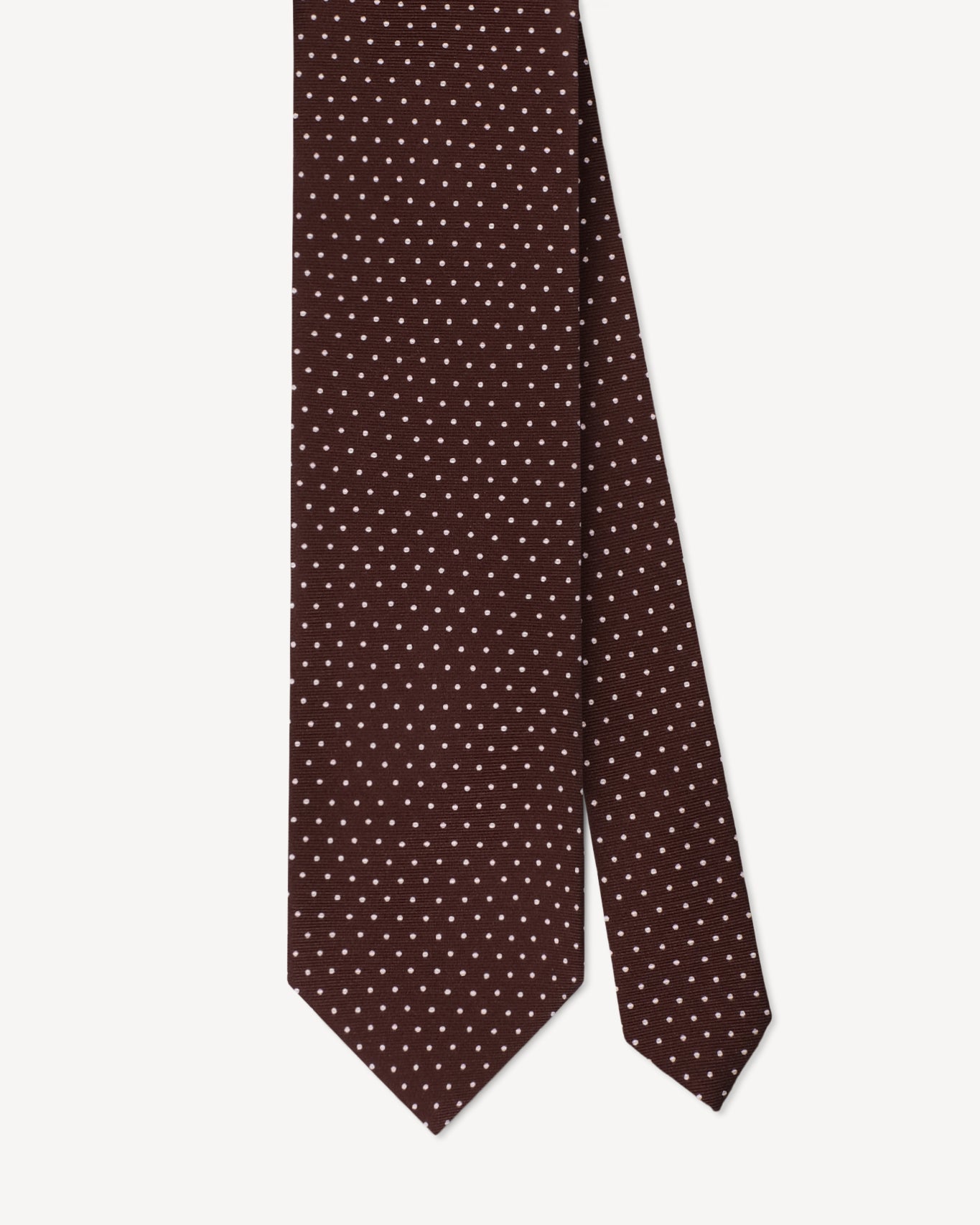 Add Pin Dot Selftipped Silk Tie – Brown/White to the cart