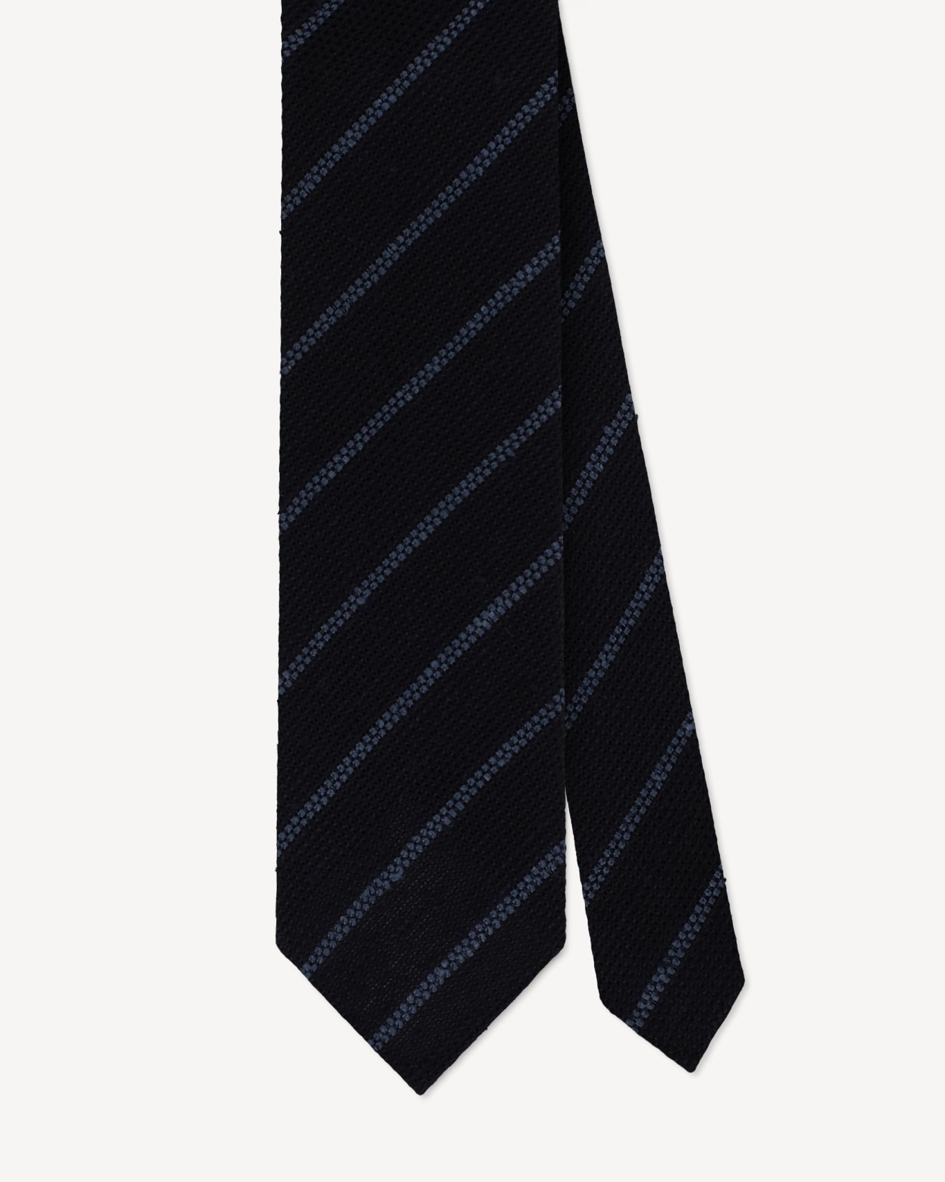 Multi Stripe Woven Grenadine/Shantung Tie – Navy/White