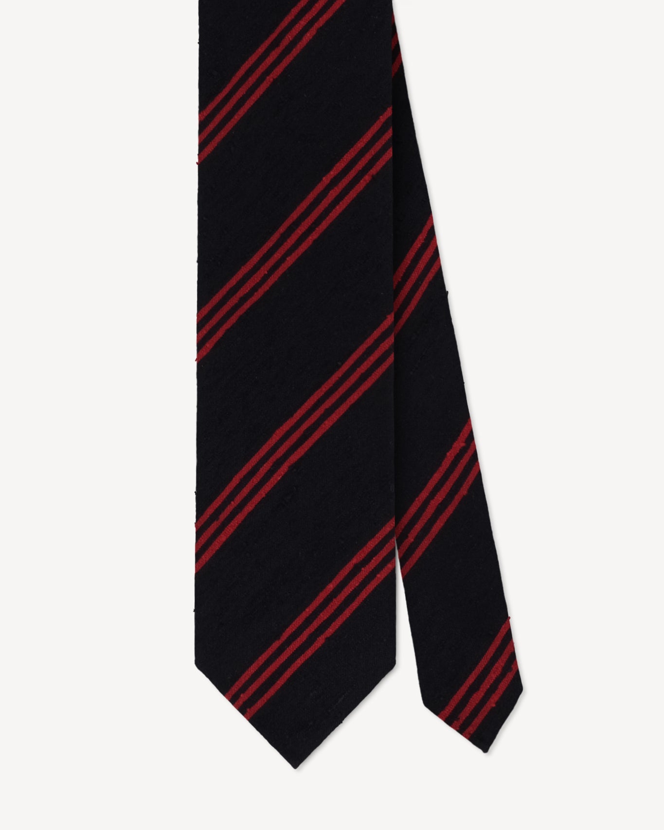 Multi Stripe Handrolled Woven Shantung Tie – Navy/Red