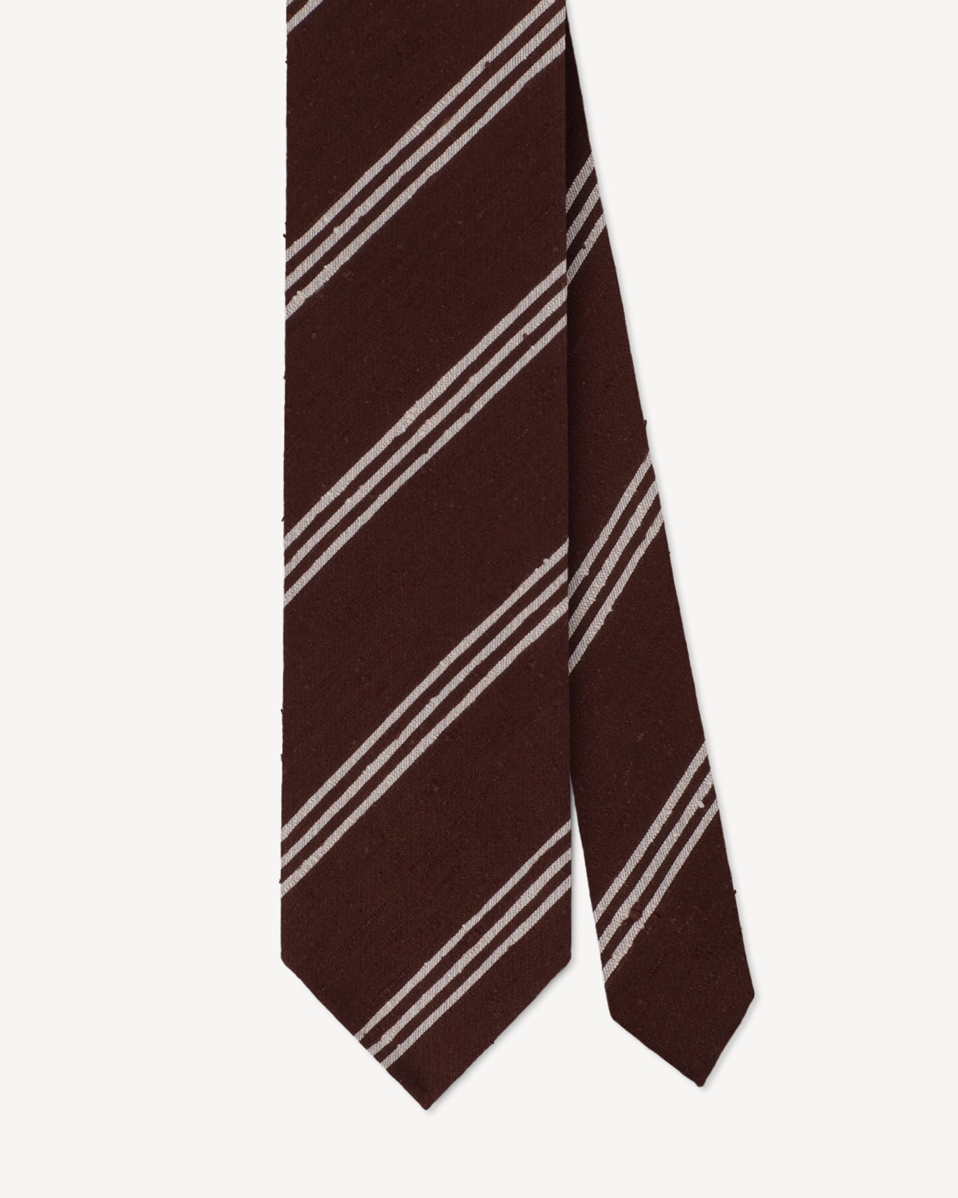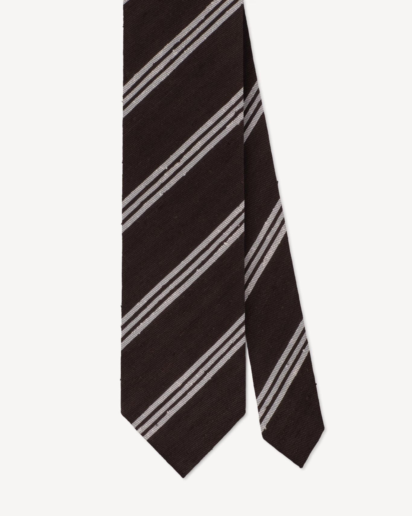 Multi Stripe Handrolled Woven Shantung Tie – Brown/White