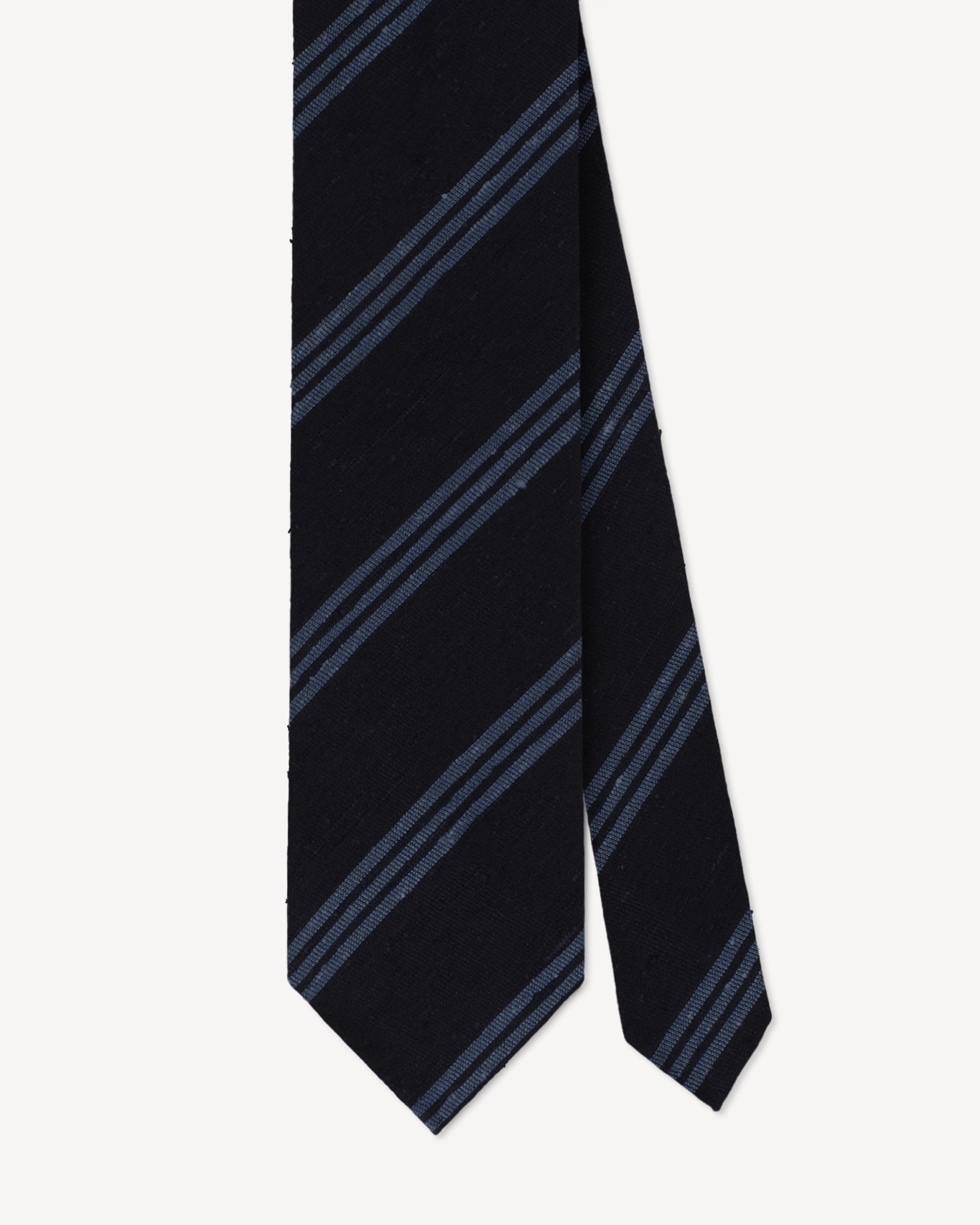 Multi Stripe Handrolled Woven Shantung Tie – Navy/Blue