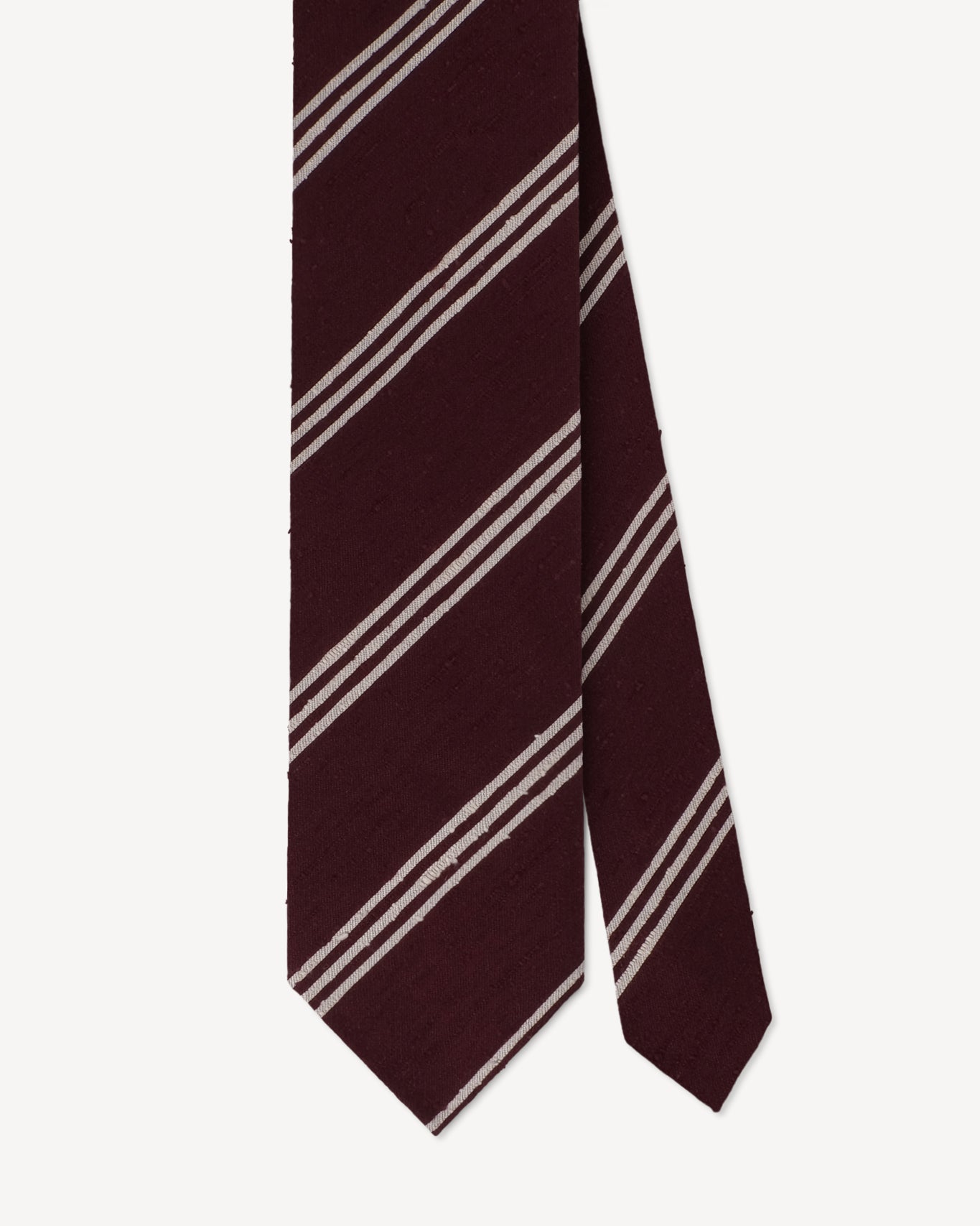 Multi Stripe Handrolled Woven Shantung Tie – Burgundy/White