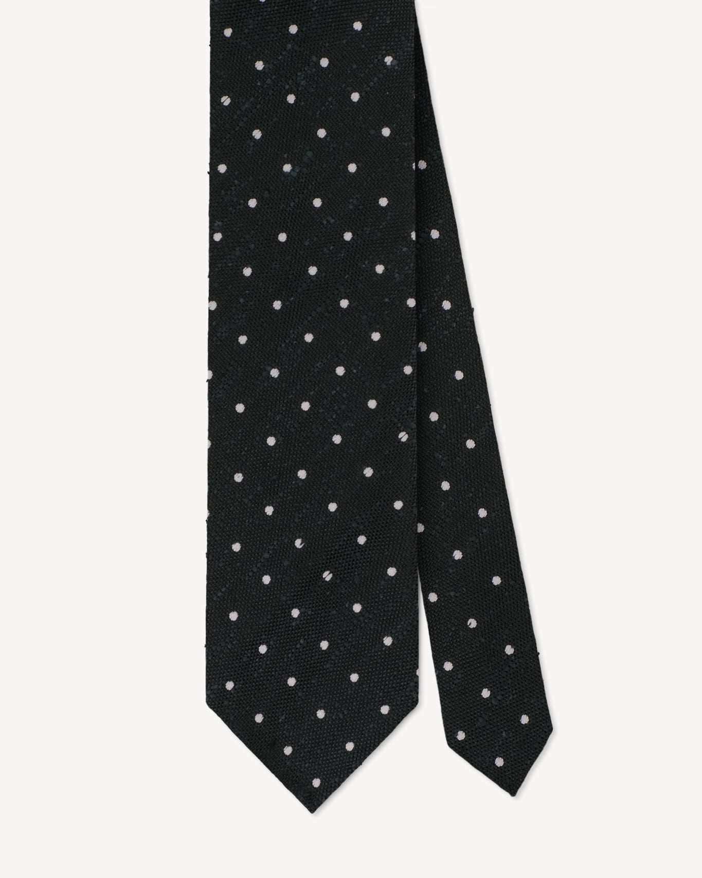 Polka Dot Handrolled Woven Shantung Tie – Forest/White